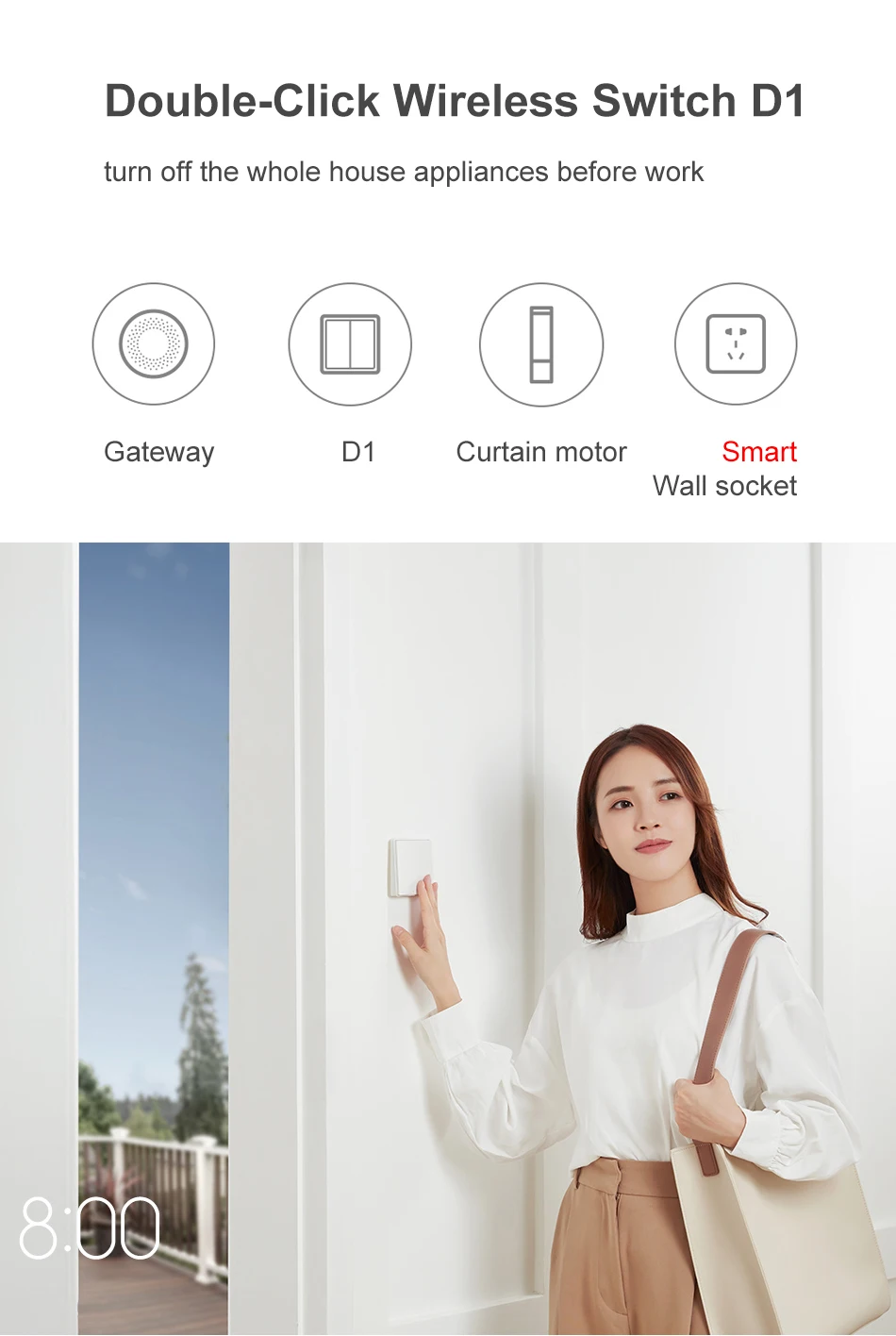 Из-за различных внутренних условий Расстояние связи между беспроводным переключателем D1 (настенный) и шлюзом отличается. Как правило, расстояние связи между ними составляет менее 20 метров, и эффект лучше, когда Середина меньше двух стен