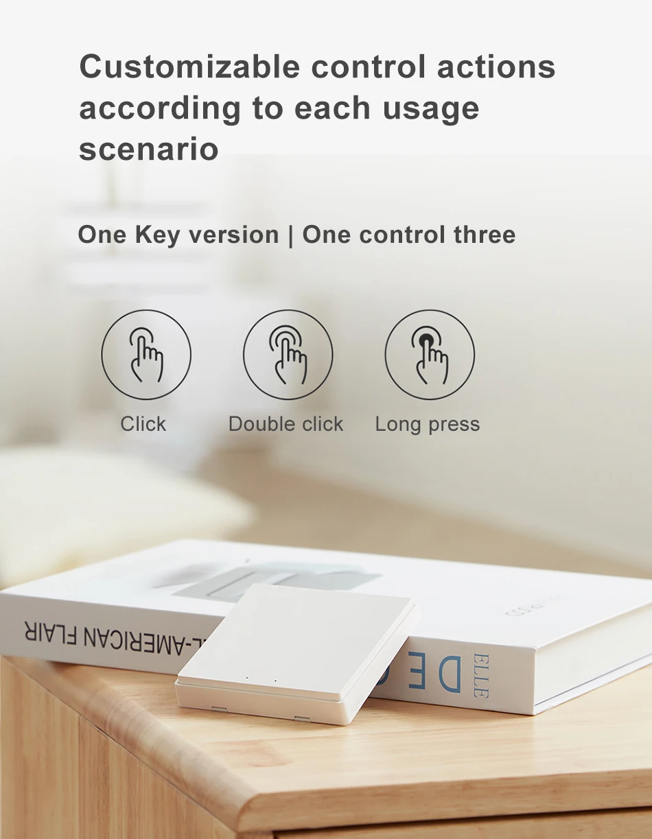 > Умный беспроводной переключатель Aqara (настенный), приборы с одним касанием, Интеллектуальная связь, 2 года работы от аккумулятора> Связанный с сетью, он может включить спальню и выключить гостиную> НАСТРАИВАЕМЫЕ действия управления в соответствии с каждым сценарием использования> Версия One-touch, три управления;> Может быть подключен к Xiaomi Mijia и Apple HmoeKit;> С другими смарт-устройствами, он используется для весь дом переключатель управления> Легко реализовать интеллектуальное двойное управление, с интеллектуальными настенными переключателями, беспроводными переключателями и шлюзами, два переключателя могут использоваться для управления одним и тем же светильник