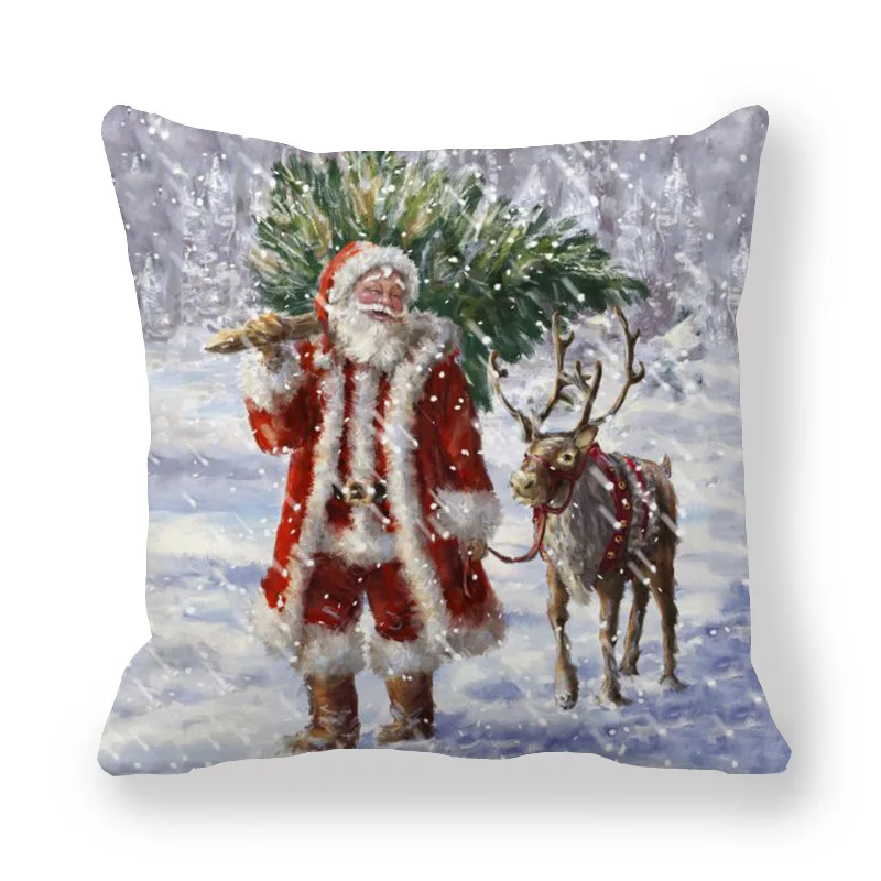 Рождественские украшения на новый год 2021 года для дома, Санта Клаус, снеговик, лось, стиль, наволочка 45x45 см для дивана, автокресла