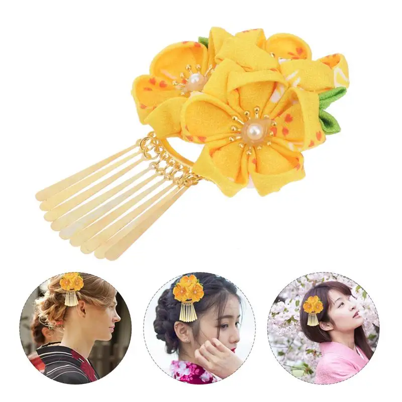 Эти заколки для волос в японском стиле можно использовать в качестве украшения для Hanfu или кимоно и т. д. эти цветы с кисточками выглядят милыми и элегантными. Они как настоящий цветок. Подходит для фотографии, путешествий, вечерние, свадебные, представления, косплей, фестивали, вечерние костюмы и т. д.