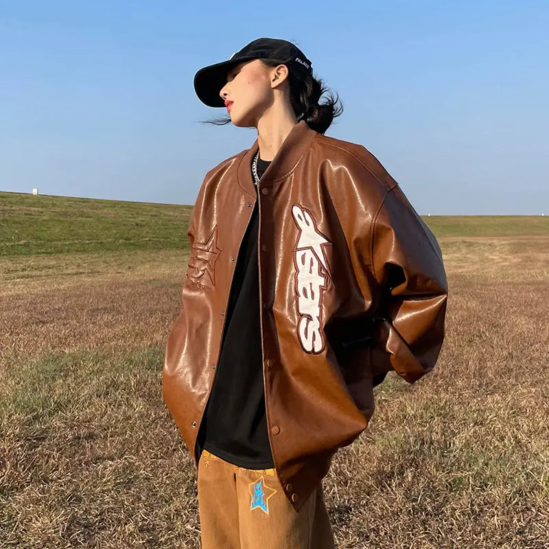 Отзывы о Куртка-бомбер из искусственной кожи женская с вышивкой в американском стиле