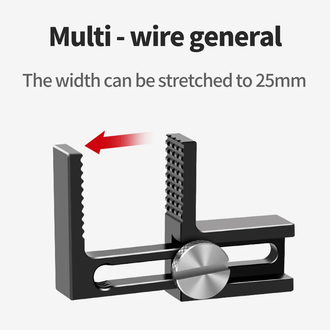Ширину зажима можно отрегулировать, а ширину можно растянуть до 25 мм.