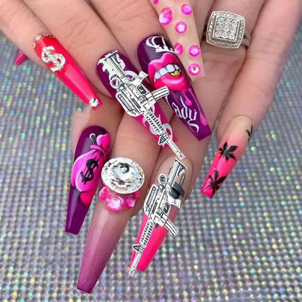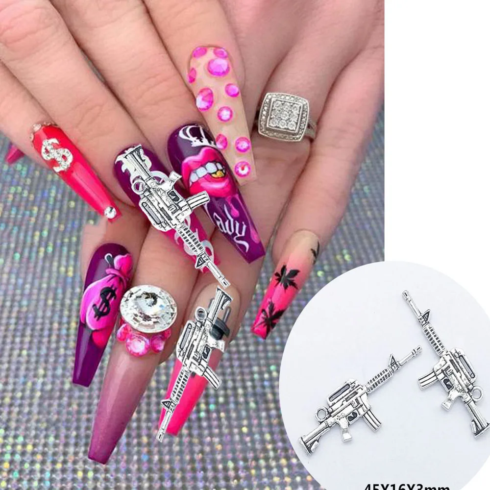 Отзывы о 10pcs Silver Nail Charms AK47 Gold/Bronze/Silver Machine Gun Punk Style Alloy Decoration Luxury Metal DIY Supplies - купить по