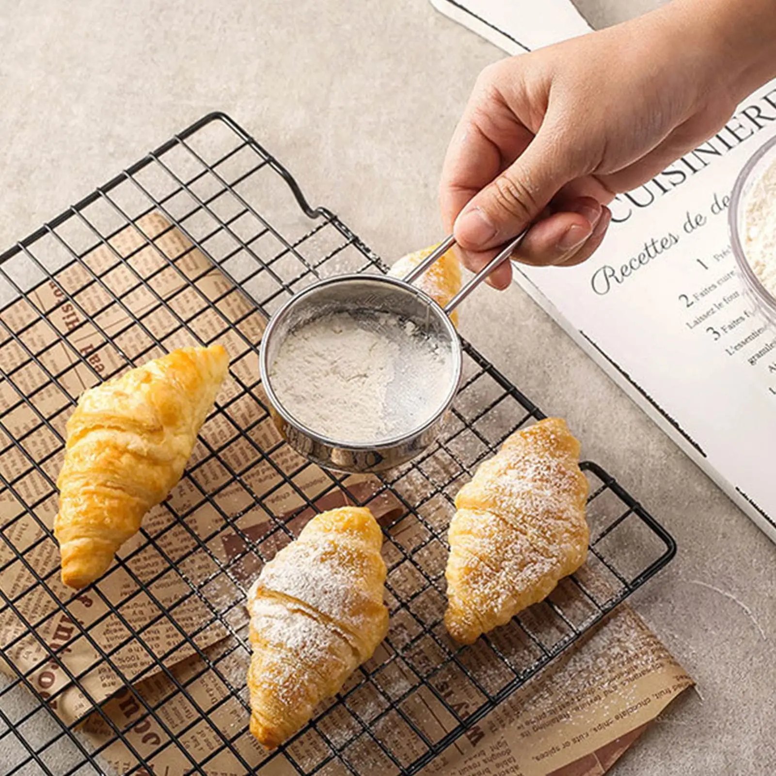 Мелкая сетка для сита для муки идеально подходит для напыления какао-порошка или сахарной глазури поверх десертов.