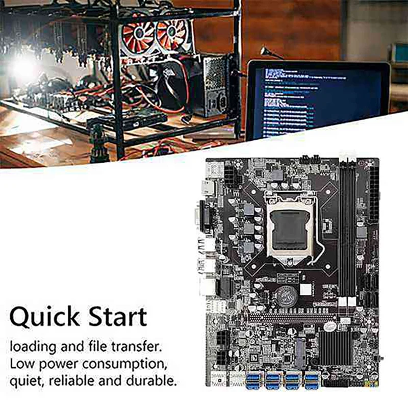 1. Материнская плата B75 USB-BTC использует цельные конденсаторы, чтобы сделать материнскую плату более стабильной; Она поддерживает ЦП LGA1155 и использует чипсет B75, чтобы обеспечить полную производительность ЦП