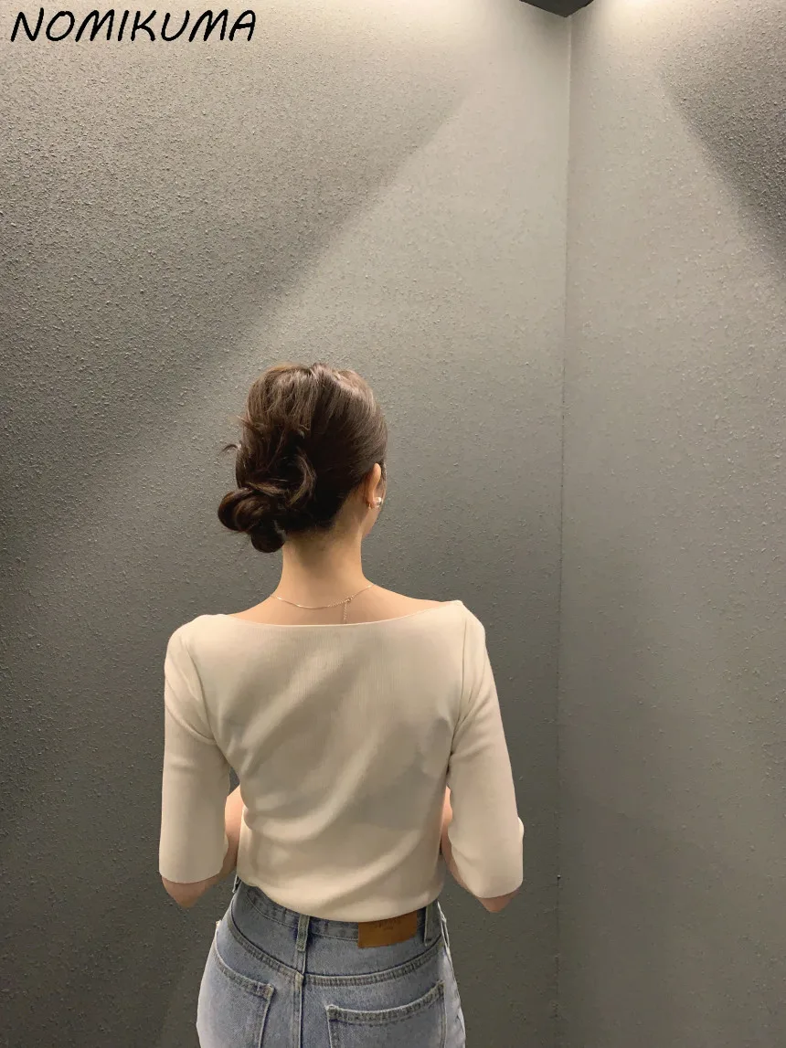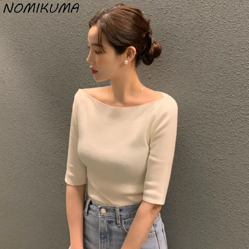 Отзывы о Корейский шикарный летний тянущийся тонкий трикотажный топ Nomikuma корейский