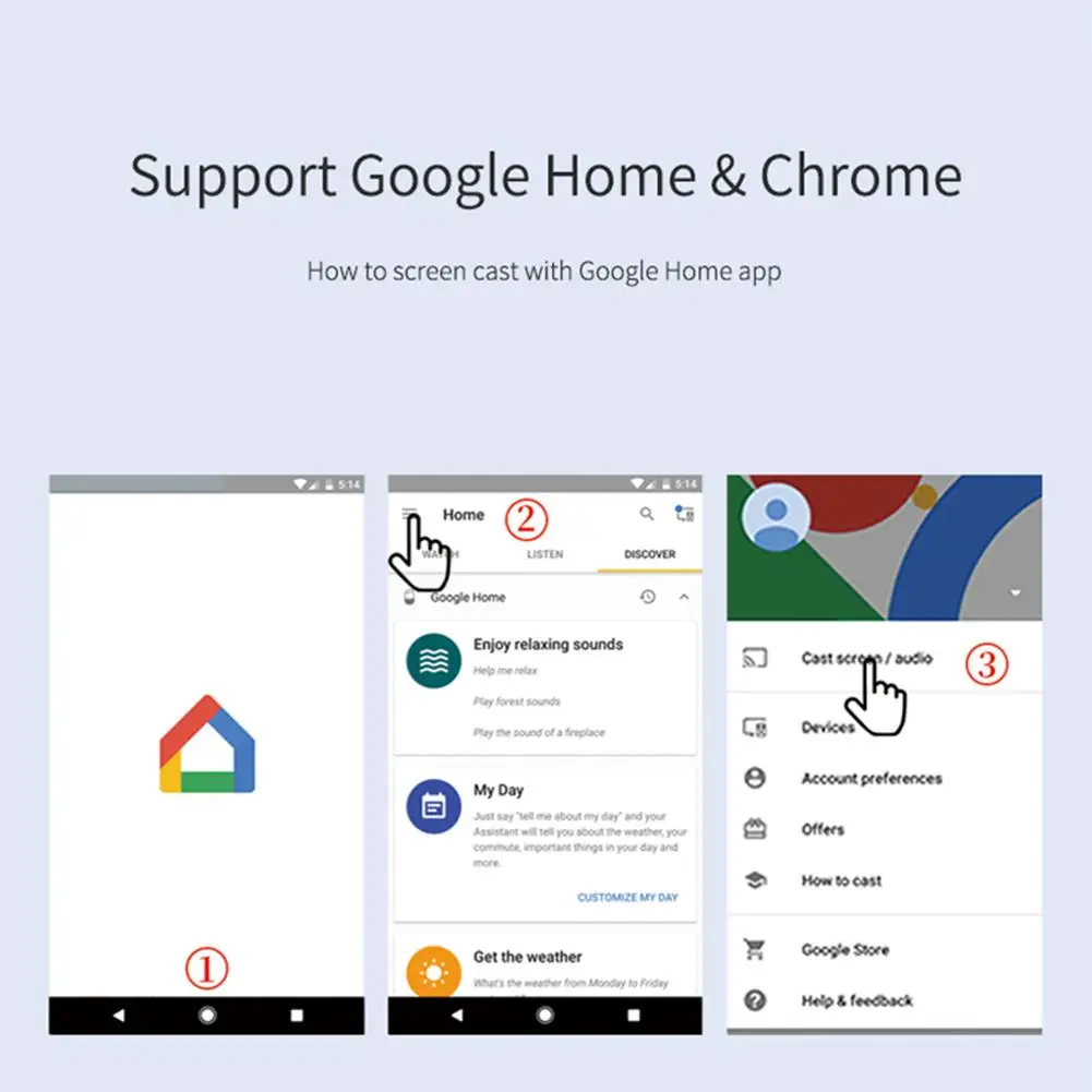 Встроенная антенна, совместимая с различными устройствами высокой совместимости; Поддержка совместима с Android/iPhone/iPad; Широкий спектр приложений; Поддержка проектора/монитора/HDTV и других совместимых с HDMI устройств.