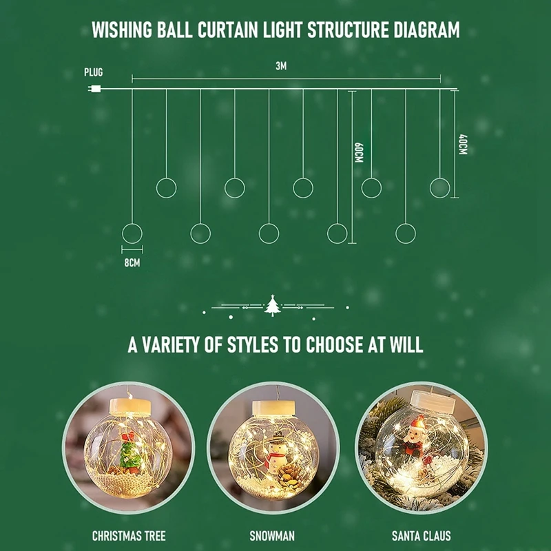 Акция! Светодиодный праздничный светильник с рождественским декором с желанием шара, гирлянда, занавес, светильник для домашнего декора, штепсельная вилка европейского стандарта