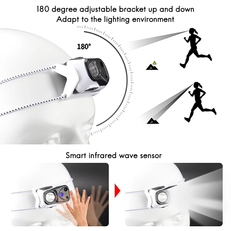 Акция! Светодиодный светильник с датчиком движения, супер-светильник светодиодный светильник, перезаряжаемый головной светильник, лампа для кемпинга, бега, пешего туризма