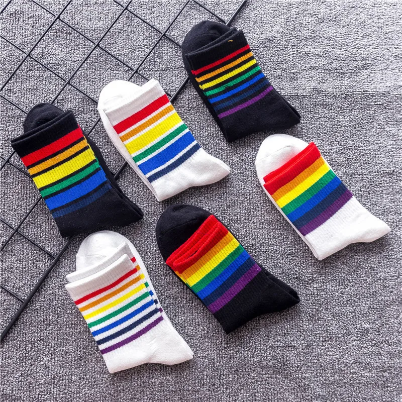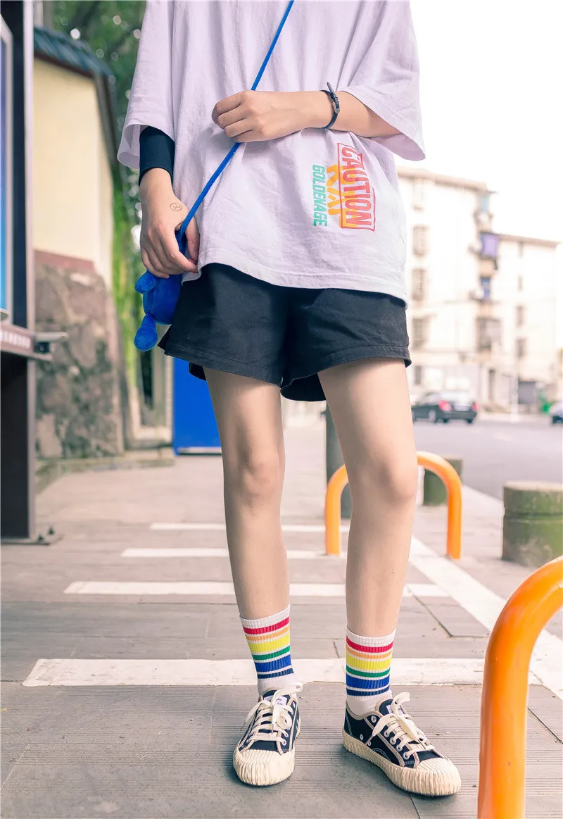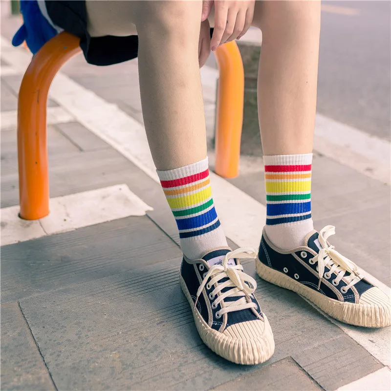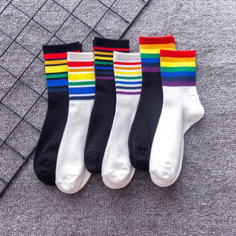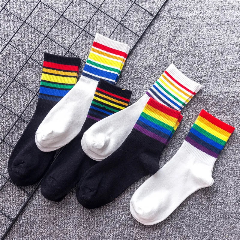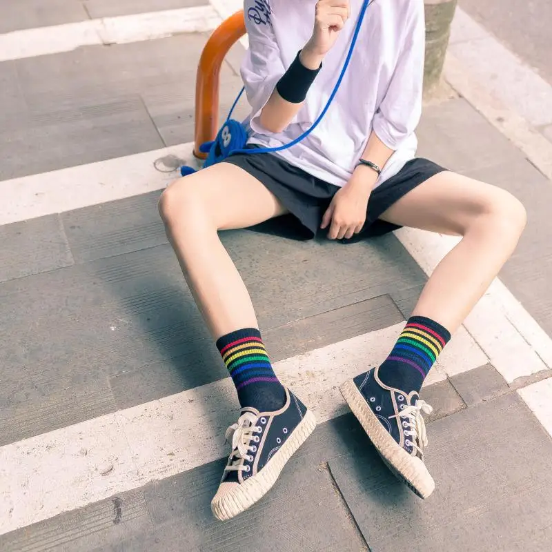 Отзывы о Милые хлопковые эластичные женские длинные носки конфетные цвета радужные