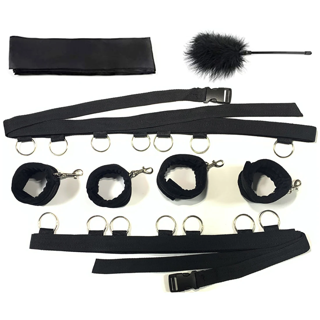 Выберите различные крепежные металлические кольца, которые могут быть завязаны в другую половую позу, позвольте вам испытать Новый кульминационный эффект. Регулируемая пряжка, отрегулируйте длину повязки в соответствии с шириной кровати.