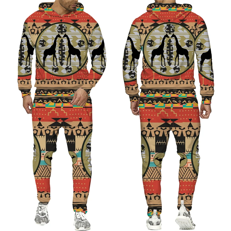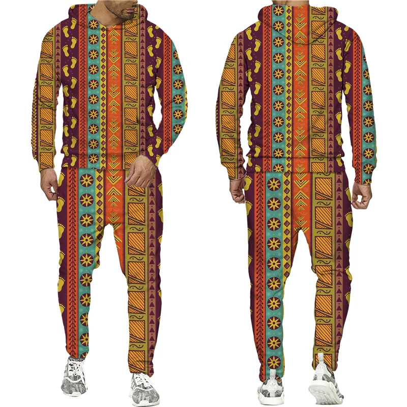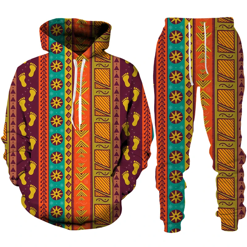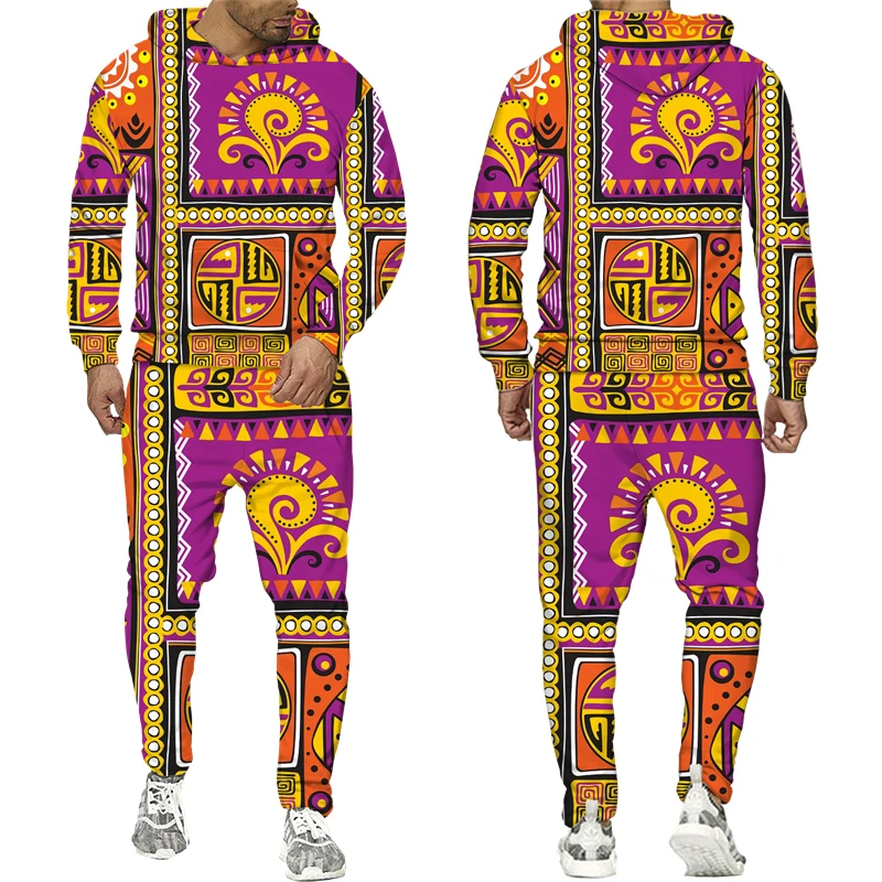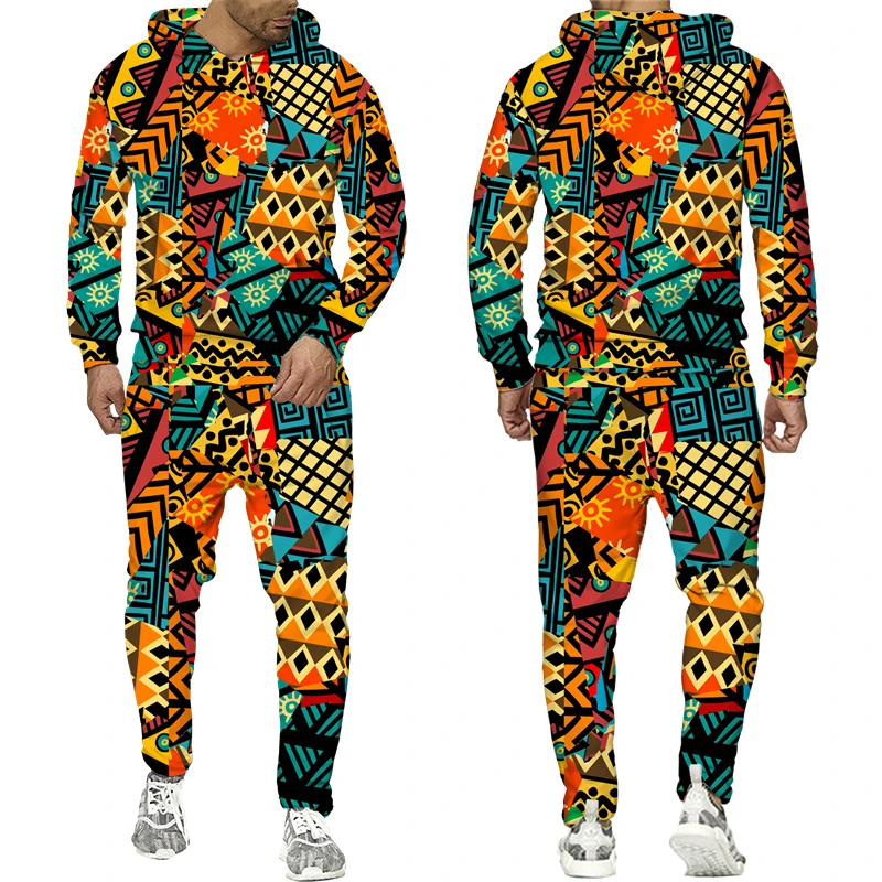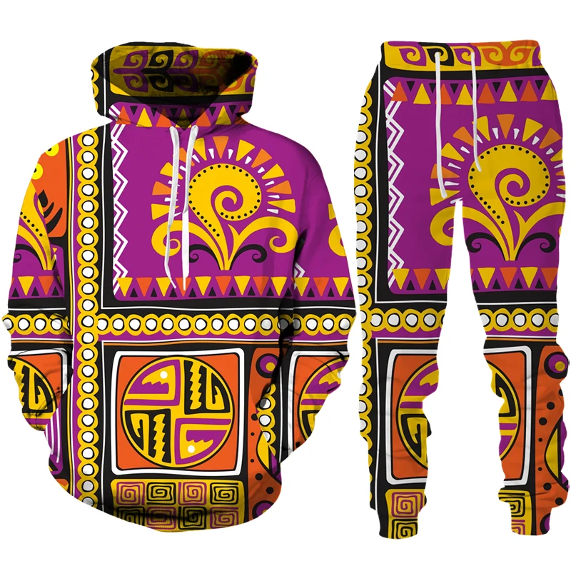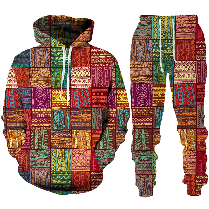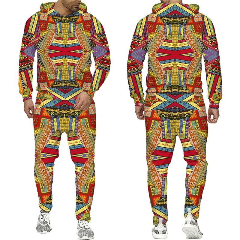 Отзывы о Костюм спортивный цветной в этническом стиле для мужчин и женщин худи с 3D-принтом