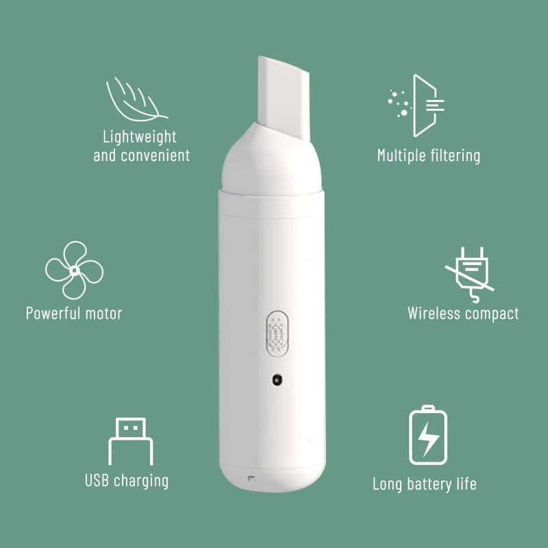 Перезаряжаемый пылесос USB: Питание от USB, можно подключить к мобильному источнику питания, автомобильному usb-интерфейсу, компьютерному usb-интерфейсу, очень удобно заряжать.