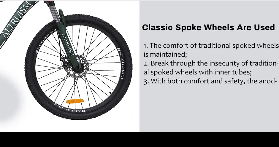 -Конструкция подвески:Запираемый амортизатор передняя вилка и задний амортизатор. Чтобы предоставить вам лучший опыт подвески.