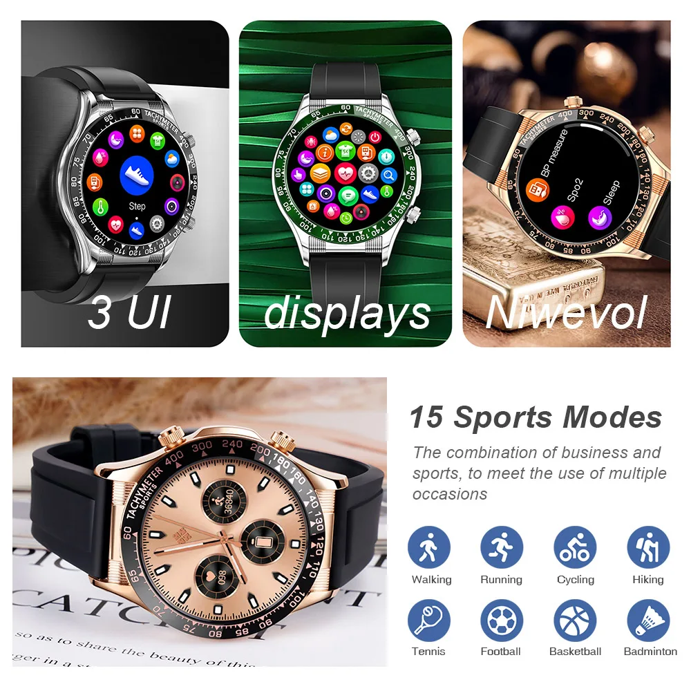 Отзывы о Смарт-часы Niwevol 2022 NFC смарт-часы с Bluetooth часы вызовами мужской фитнес-браслет 1 32