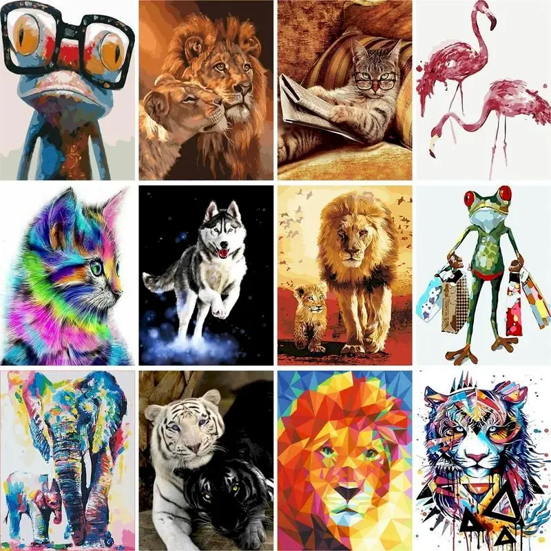 Отзывы о GATYZTORY безрамные кошки Львы животные DIY Набор для рисования по номерам Раскраска