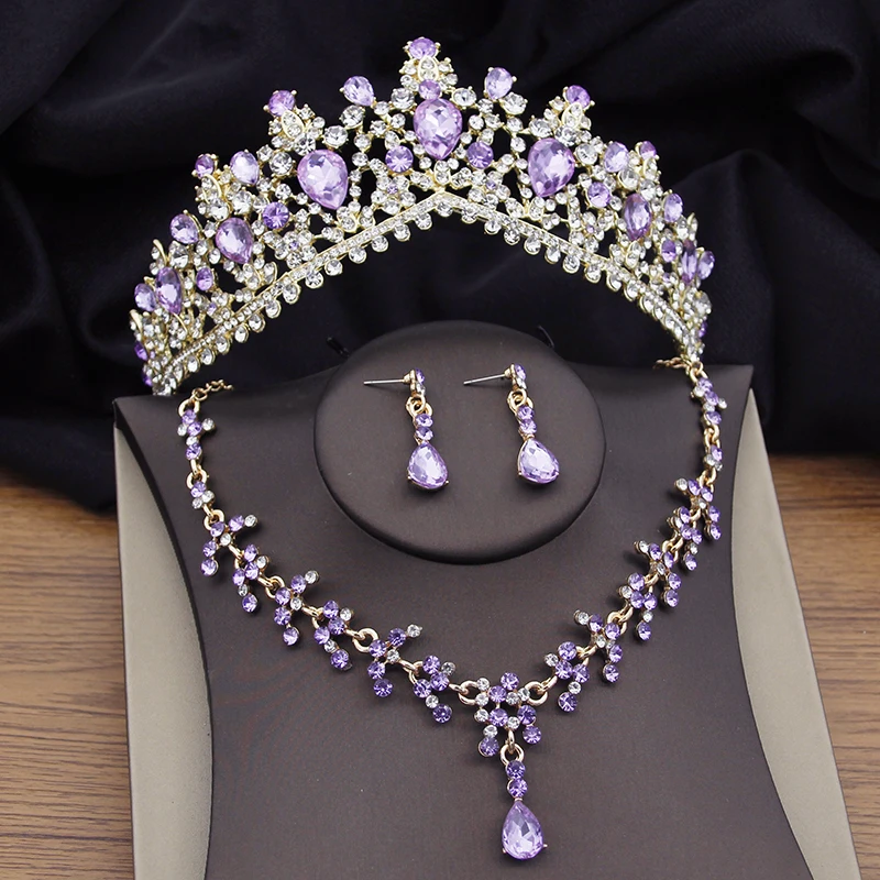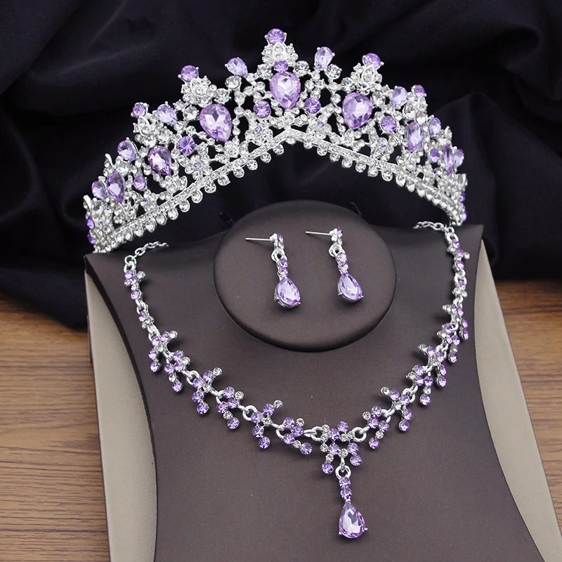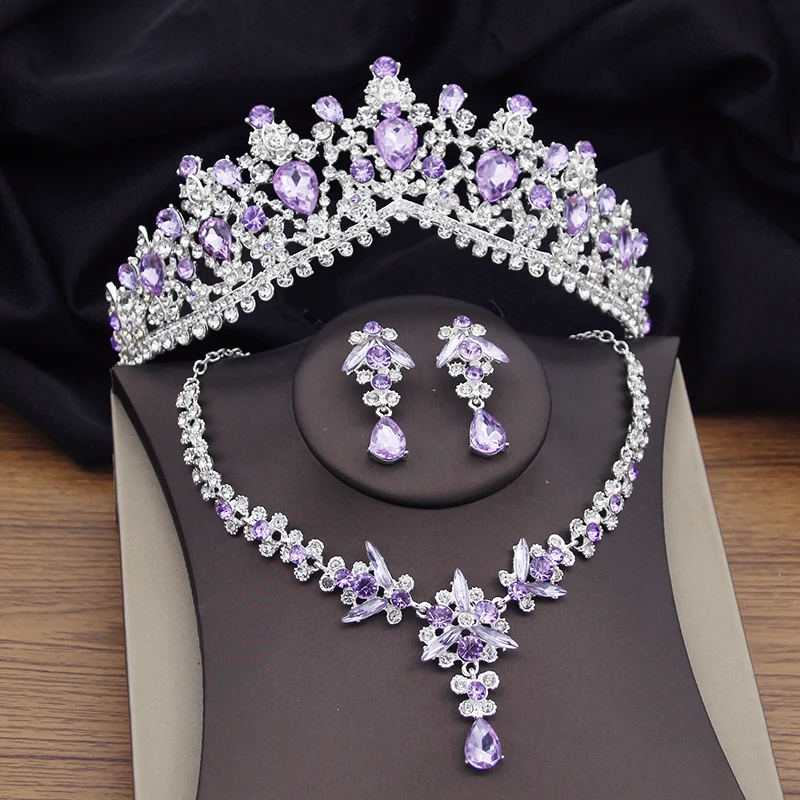 Отзывы о Женский ювелирный комплект из колье и серёг с фиолетовыми кристаллами - купить по