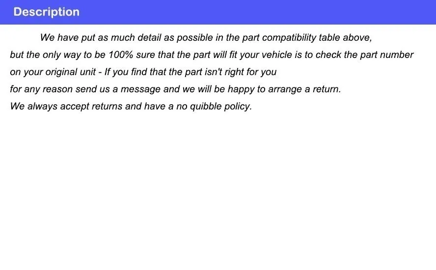 Пожалуйста, проверьте номер детали производителя (обычно штампованный в пластик или корпус) перед заказом