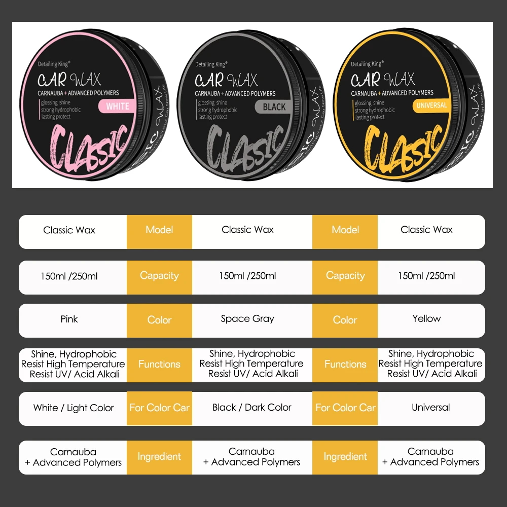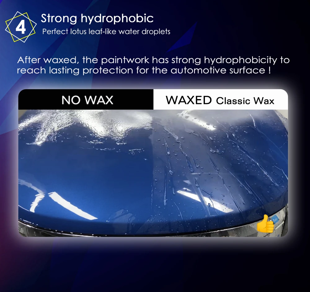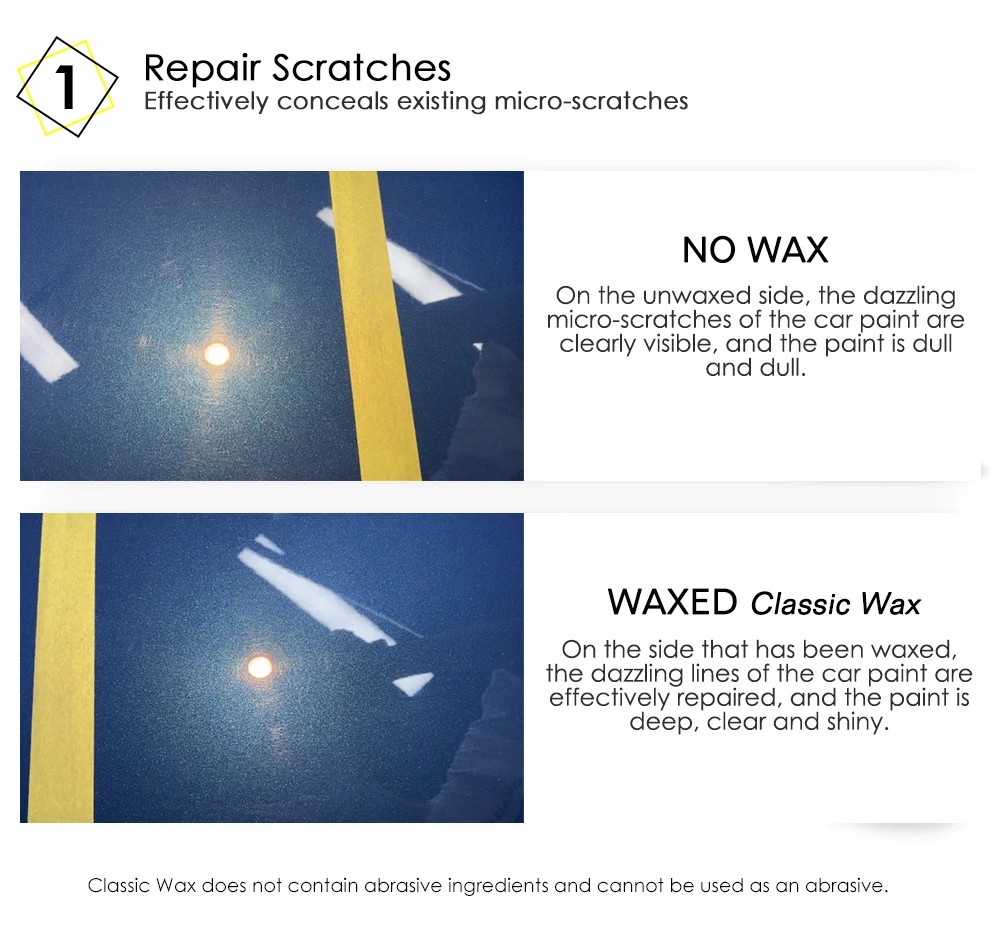 ① Классический воск специально разработан для автомобилей! Этот продукт может решить такие проблемы, как тусклая краска, царапины, пыль и масло и старение цвета.
