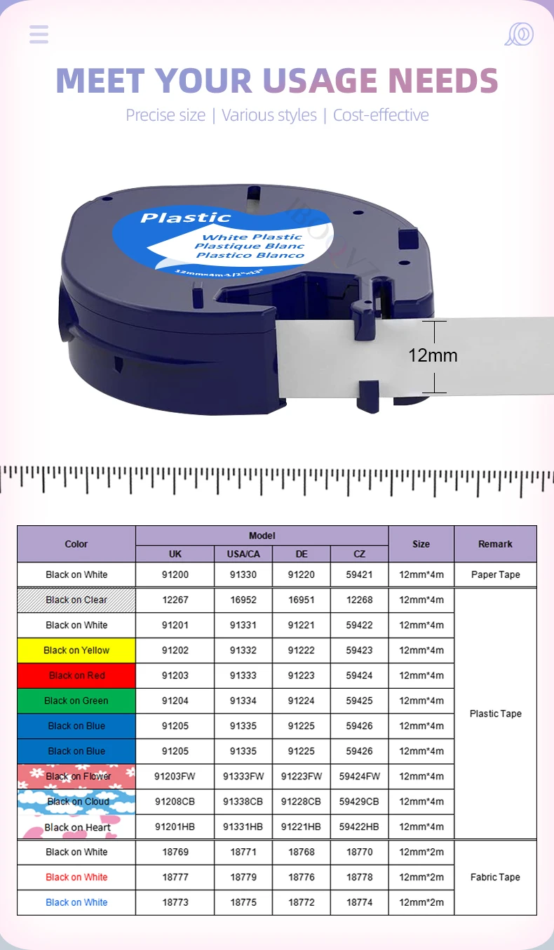 Для Dymo S0883980 LetraTag LT-100H, Dymo S0883990 LetraTag LT-100H, Dymo S0901180 LetraTag LT-100H плюс, Dymo V150307 LetraTag LT-100T плюс, Dymo S0758370 LetraTag LT-100T, Dymo 1733011 LetraTag LT100-H, Dymo LetraTag LT-110T, dymo LetraTag QX-50, Dymo LetraTag XM, Dymo LetraTag 2000, Dymo LetraTag XR
