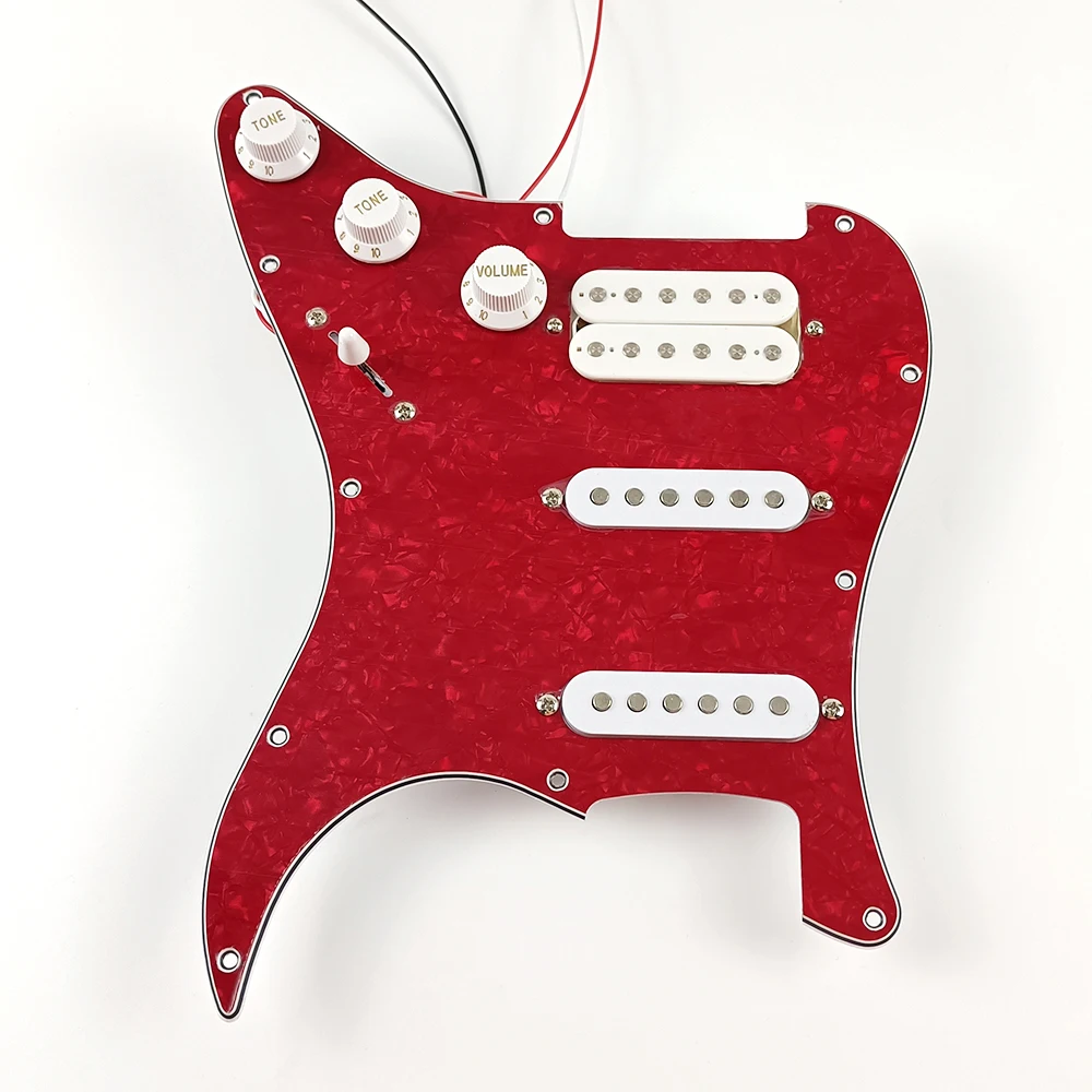 Pickguard:4 слоя Красного жемчуга, 11 отверстий SSH Guitar Pickguard, с чистой алюминиевой фольгой, экранированной на задней стороне и защитной пленкой на верхней части.