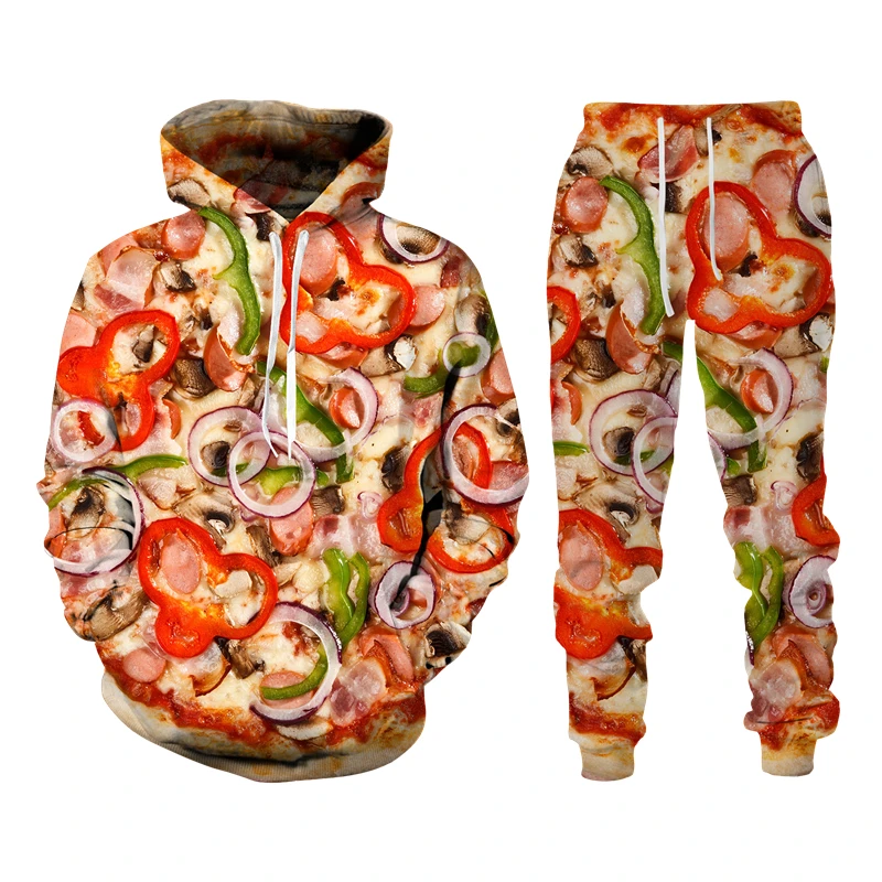 Отзывы о Весенне-осенние толстовки с капюшоном 3D-принтом тортильи пиццы забавные и брюки