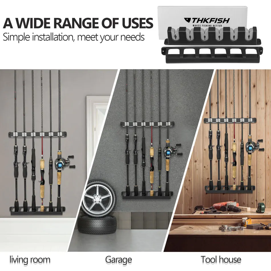 THKFISH 2 шт. держатель удочки Набор Подставка 6 отверстий черный ABS пластик износостойкая прочная горизонтальная настенная стойка для удочек