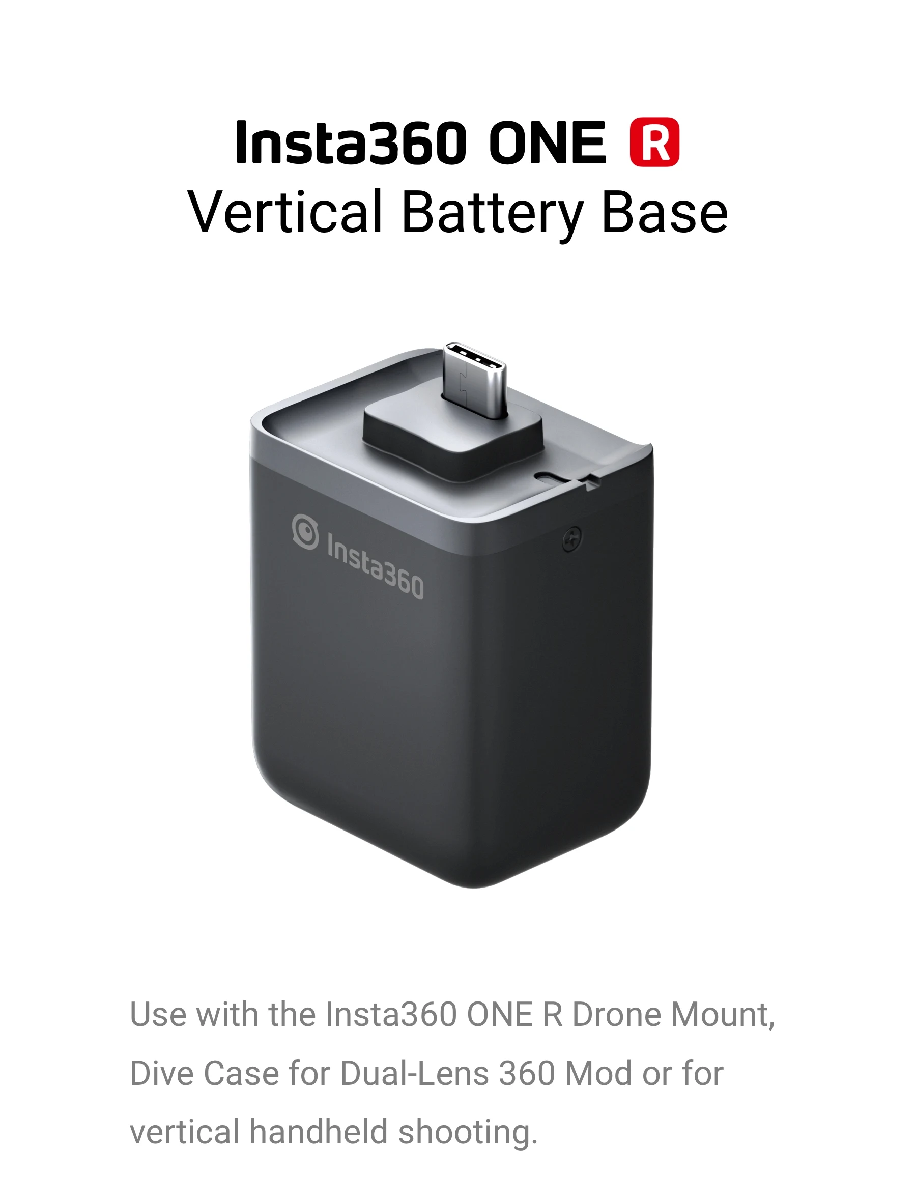 Вертикальный чехол-бампер совместим с вертикальным основанием аккумулятора и может быть собран с одним широкоугольным модом R 4K, 1 дюймовым широкоугольным модом или двойным объективом 360.