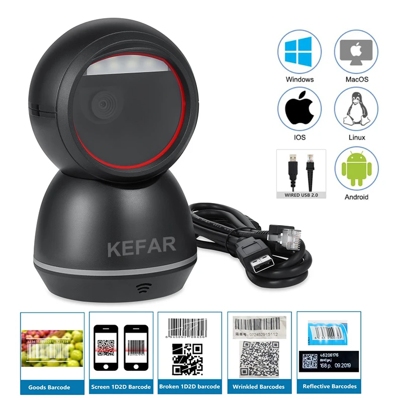 Модель 2: KR-A70 проводной всенаправленный настольный сканер штрих-кода 1D 2D QR считыватель штрих-кодов с автоматическим сканированием для супермаркета кассовый аппарат