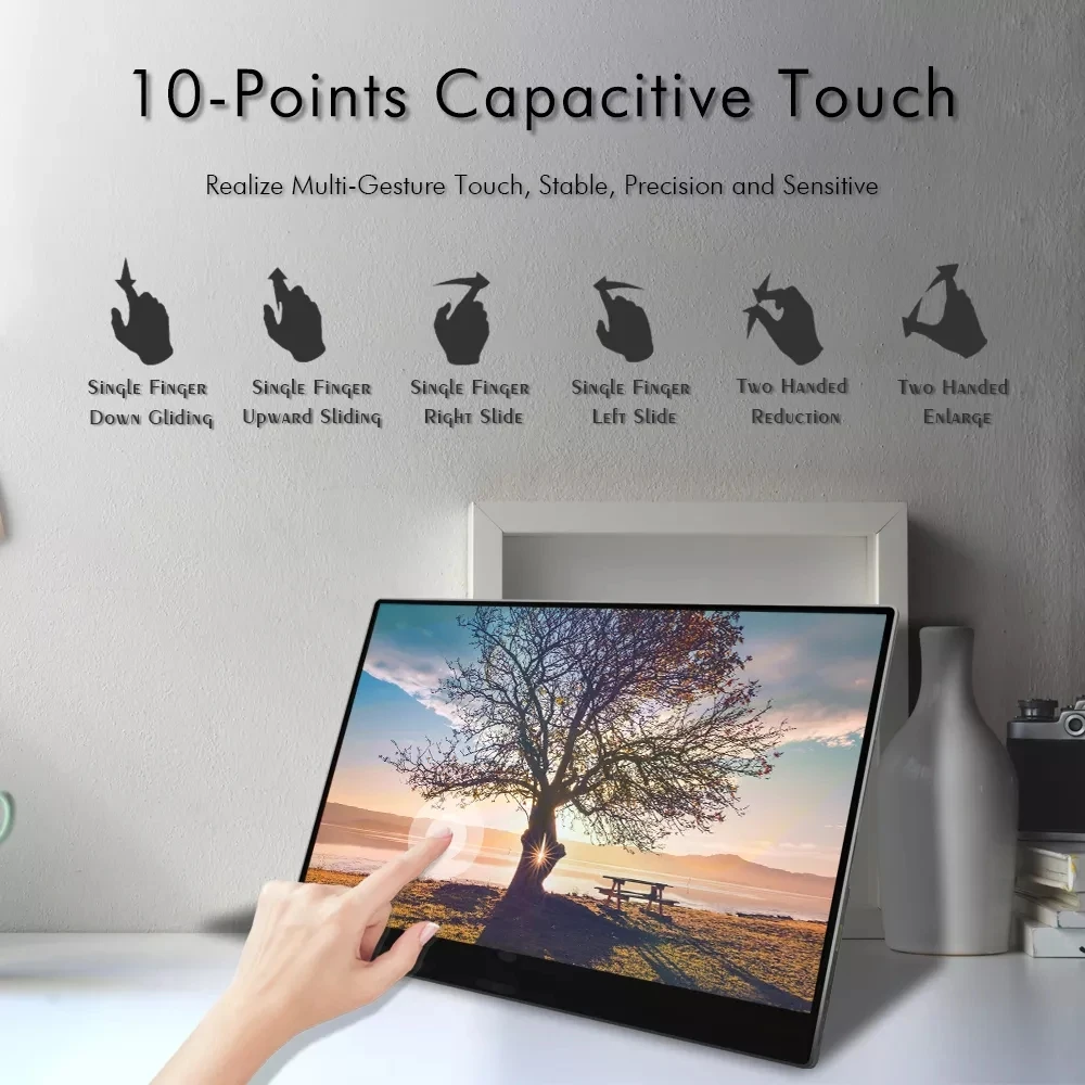 16 дюймов 1080p с сенсорным экраномМодель: 16 дюймов сенсорный экран Экран Портативный мониторТип панели: 16 дюймов TFT IPS LCD (16:9 широкий) светодиодный подсветкаСенсорный экран Экран: Проективная емкостная G + G Full-ламинированные сенсорный монитор сердечного ритма поддержка 10-пальцевым многоточечный сенсорный экранПоддержка win8,win8.1,win10Разрешение/глубина цвета: 1920(RGB) x1080(FHD)Цвета дисплея: 16,7 М, цвета 6 бит + FRC,72% sRGBАктивная область: 349,632 (В) * 196,668 (В)Шаг пикселей: 0,1821 (H) X 0,1821 (V)Угол обзора (U/D/L/R): 85/85/85/85 (Typ.)(CR≥ 10)Коэффициент контрастности: 800:1 (Типичный)Плоское соотношение: 16:9 (H:V)Яркость: 220(cd/m2)Время отклика: 30 (мс)Вертикальная частота: 60 ГцКорпус монитора: высококачественный алюминиевый сплавТип экрана: глянцевыйПодключение:* Мини-порт HDMI * 1* Порт USB Type C * 2 (полнофункциональный Порт-для передачи данных питания и видео)• Разъем для наушников Порты и разъёмы (3,5 мм) * 1* Порт Micro-USB * 1 (для подключения с клавиатурой и мышью)Совместимость с различными устройствами HDMI и USBType-C: смартфоном, ноутбуком, M & ac,Xbox One, Xbox 360, PlayStation 4, PlayStation,Переключатель, ПК и мобильные устройстваДинамики: 2 х 1,0 Вт (макс.)Номинальное напряжение: 5V-2.0AРазмеры (Ш/В/т): 361*224*11 ммВес: 960 гБесплатные аксессуары: кабель Type-C * кабель 1 / HDMI * кабель 1 / USB A-C * адаптер 1 / AC * 1/Руководство пользователя * 1/кожаный чехол