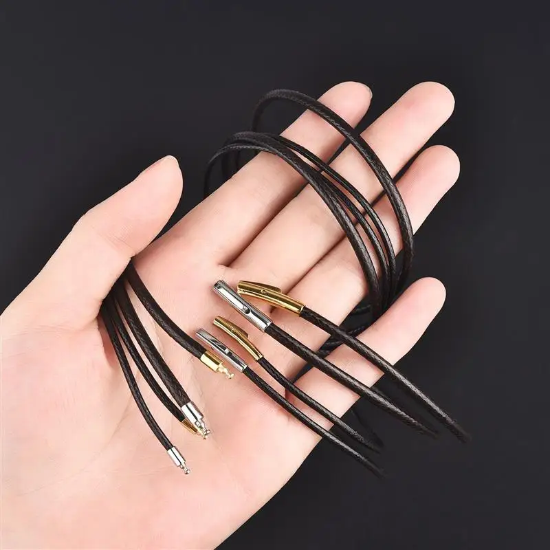 Пряжка из нержавеющей стали, кожаная веревка, вощеный шнур, ожерелье для женщин и мужчин, подарок, сделай сам, ювелирные изделия, аксессуары, кожаная цепочка, восковая веревка 45-60 смМатериал: нержавеющая сталь + восковая веревка