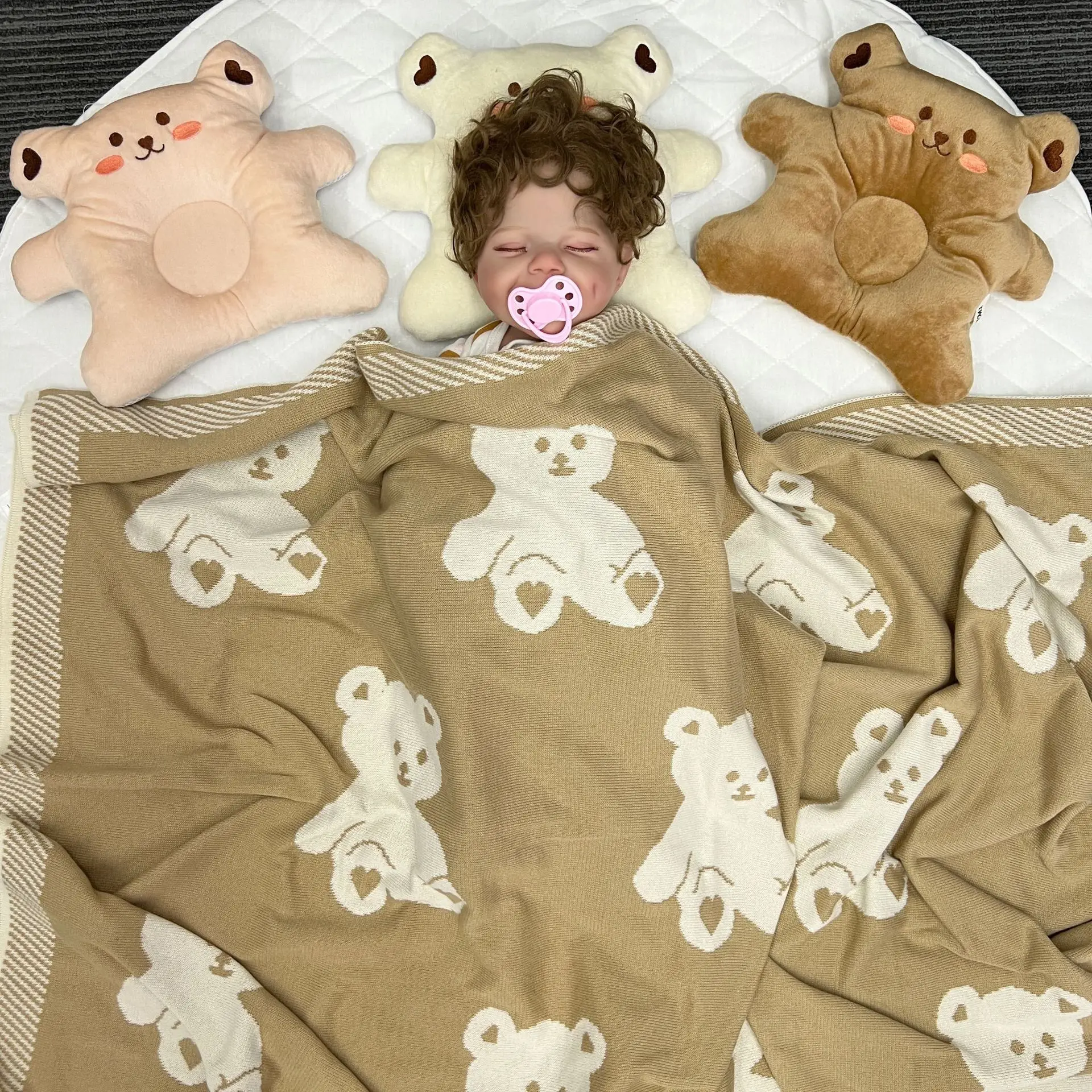 Детская подушка в форме головы против смещения Милая круглая хлопковая форма медведя из мультфильма подушка для коррекции новорожденных постельные принадлежности украшение комнаты