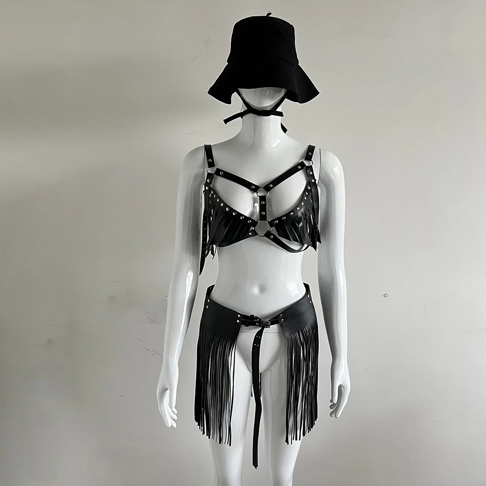 Отзывы о Кожаная женская портупея с бахромой фетиш сексуальная Женская клетка бондаж для