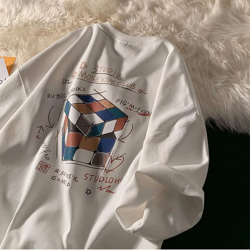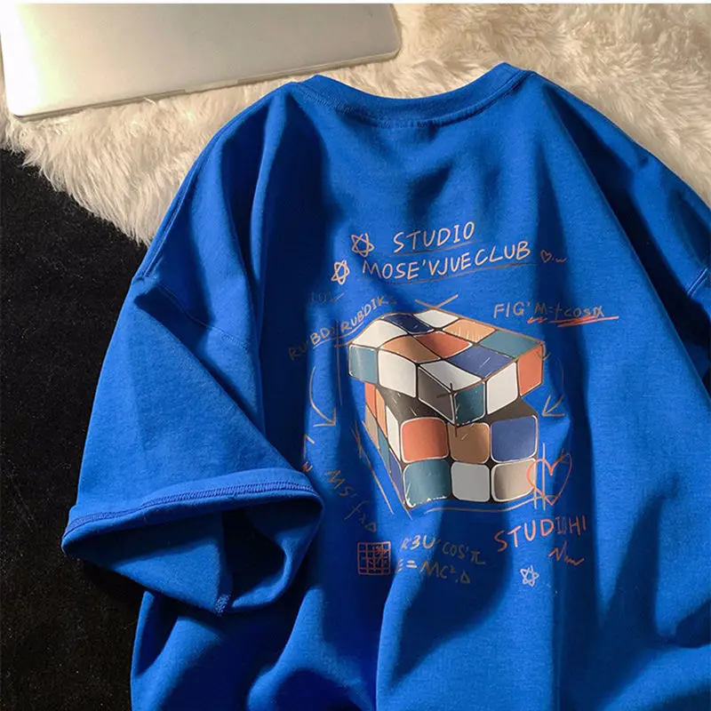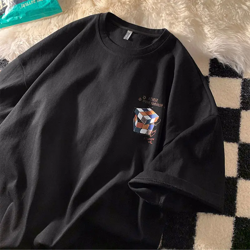 Отзывы о Футболка женская оверсайз с принтом кубика Рубика и коротким рукавом 100% хлопок -