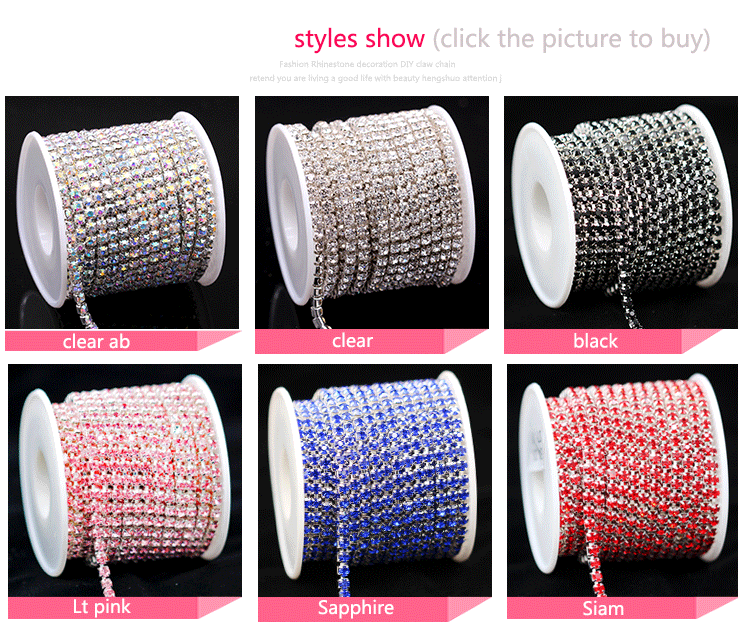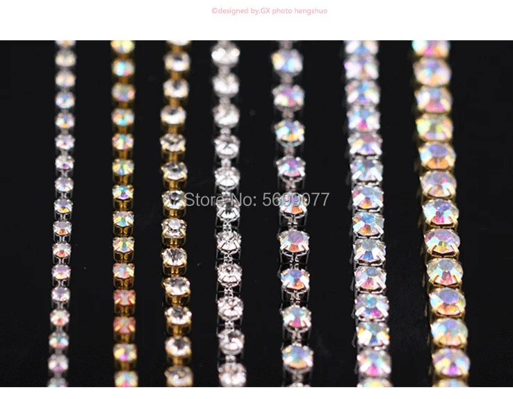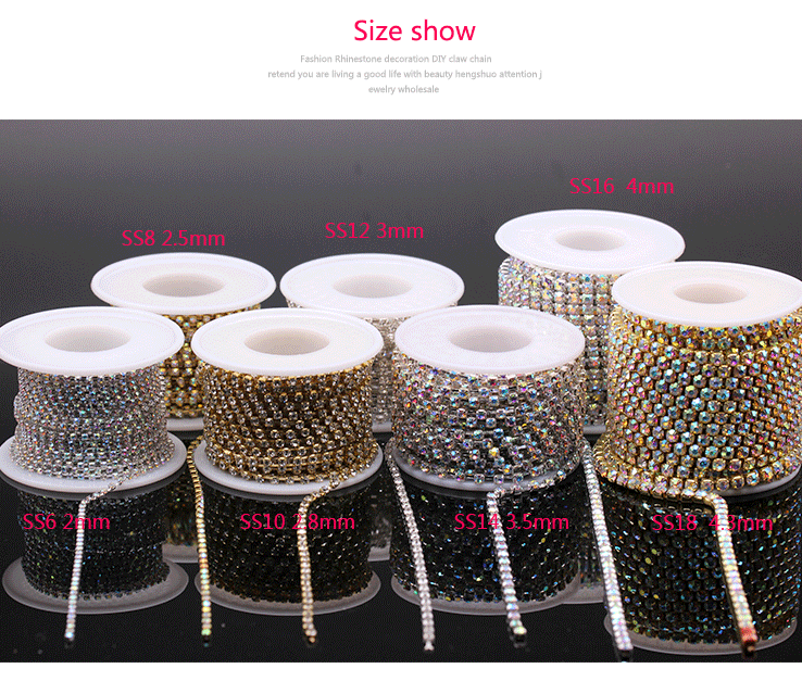 Наименование товара: закрытые хрустальные цепочки со стразамиЦвет Стразы: 10 цветов на выборЦвет когтя: серебристый/золотойРазмер: ss6 ss8 ss10 ss12 ss14 ss16 ss18Упаковка: 1yards-упаковка 10 ярдов/рулон