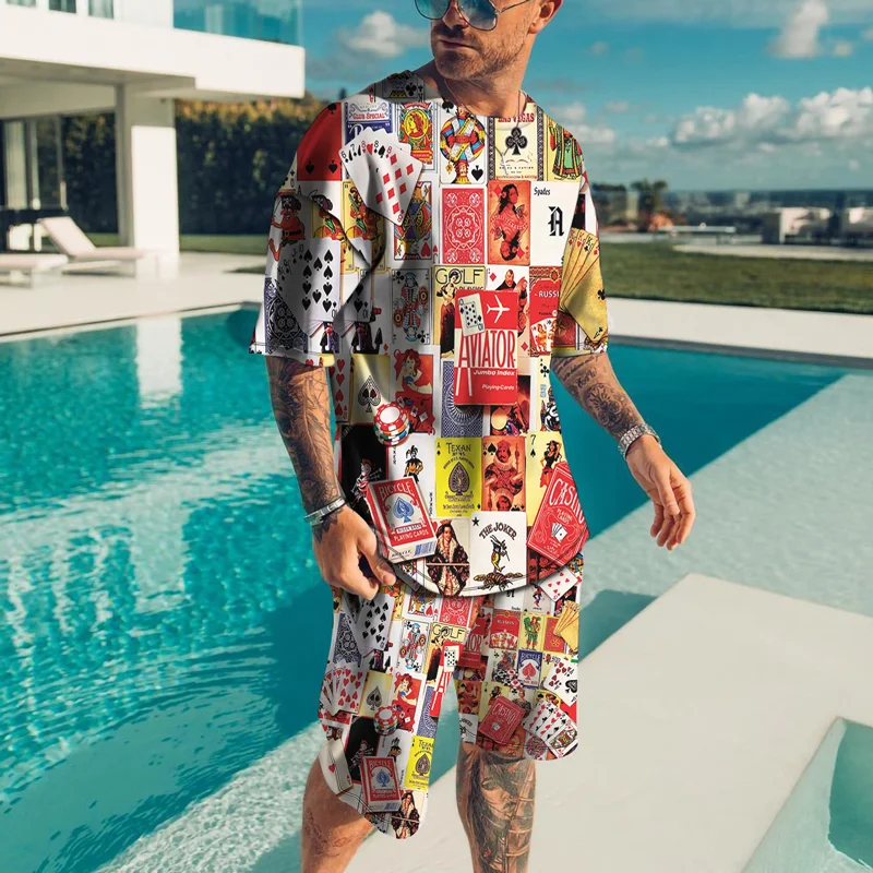 Отзывы о Летние мужские комплекты игральные карты с принтом футболка короткими рукавами