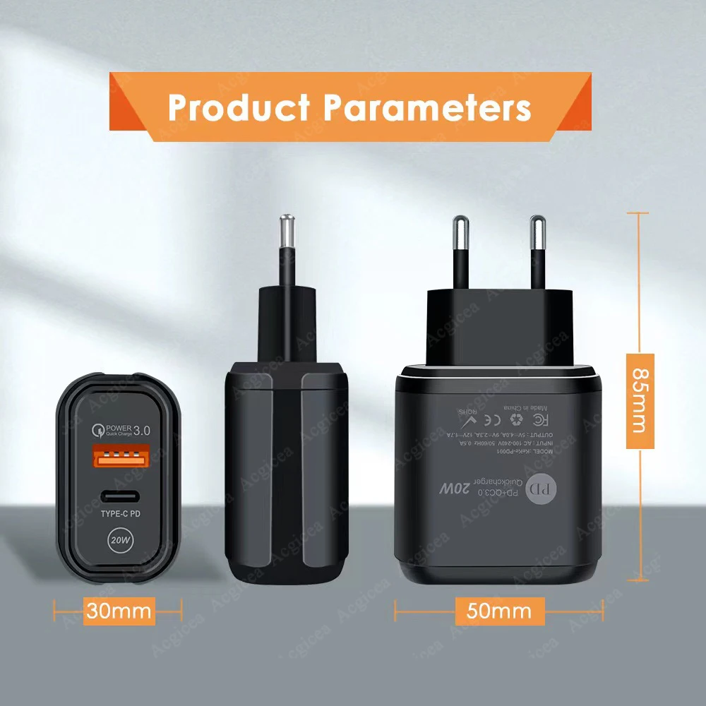 PD 20 Вт USB Type C зарядное устройство Быстрая зарядка для iPhone 13 12 Pro Max Huawei Xiaomi быстрое настенное зарядное устройство адаптер QC 3,0 EU/US Plug