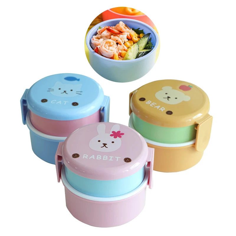 Ланч-бокс с животными 540 мл японский двухслойный Круглый Мини-Бенто-бокс Детская