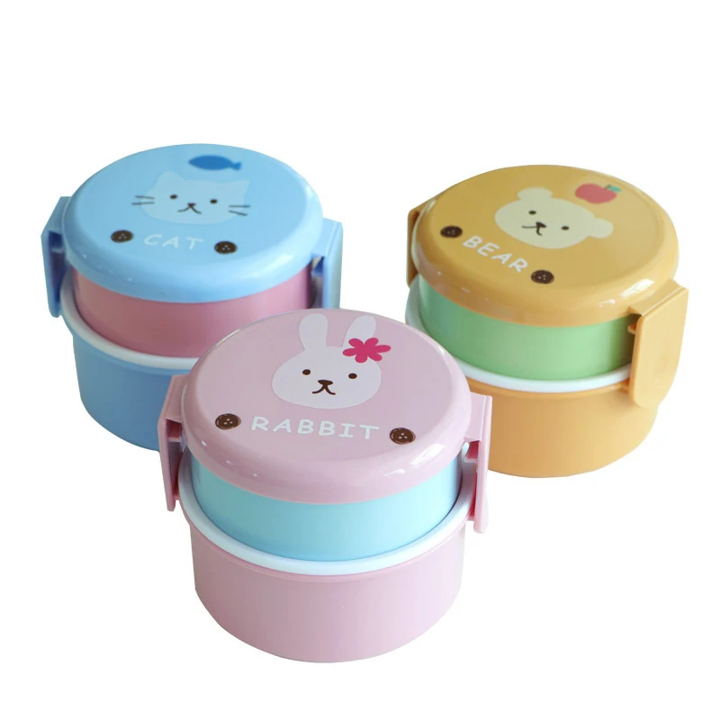 Отзывы о Ланч-бокс с животными 540 мл японский двухслойный Круглый Мини-Бенто-бокс Детская