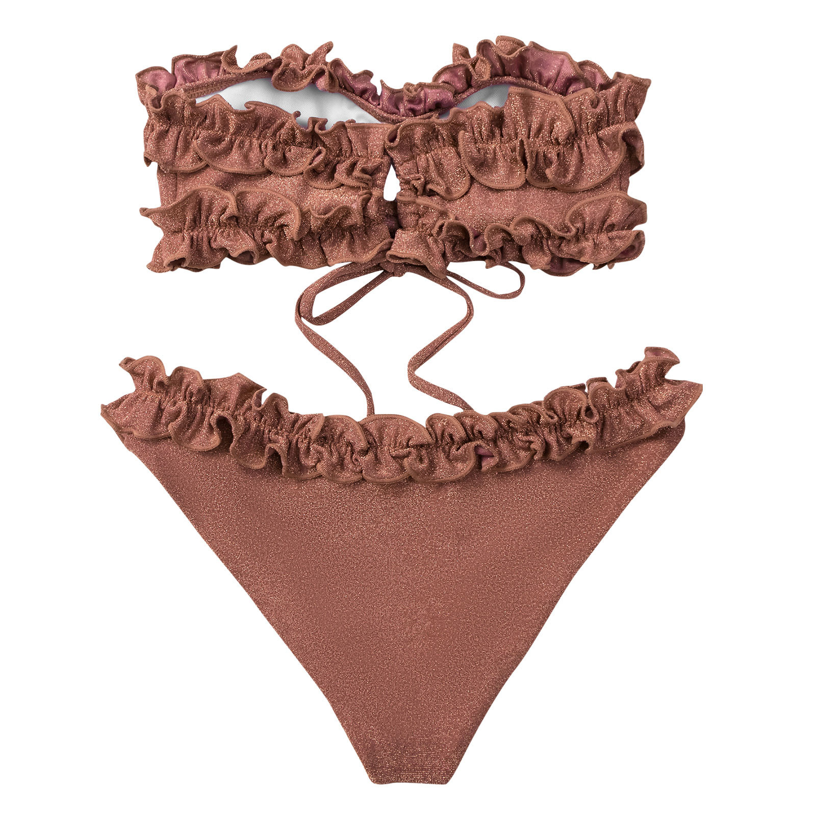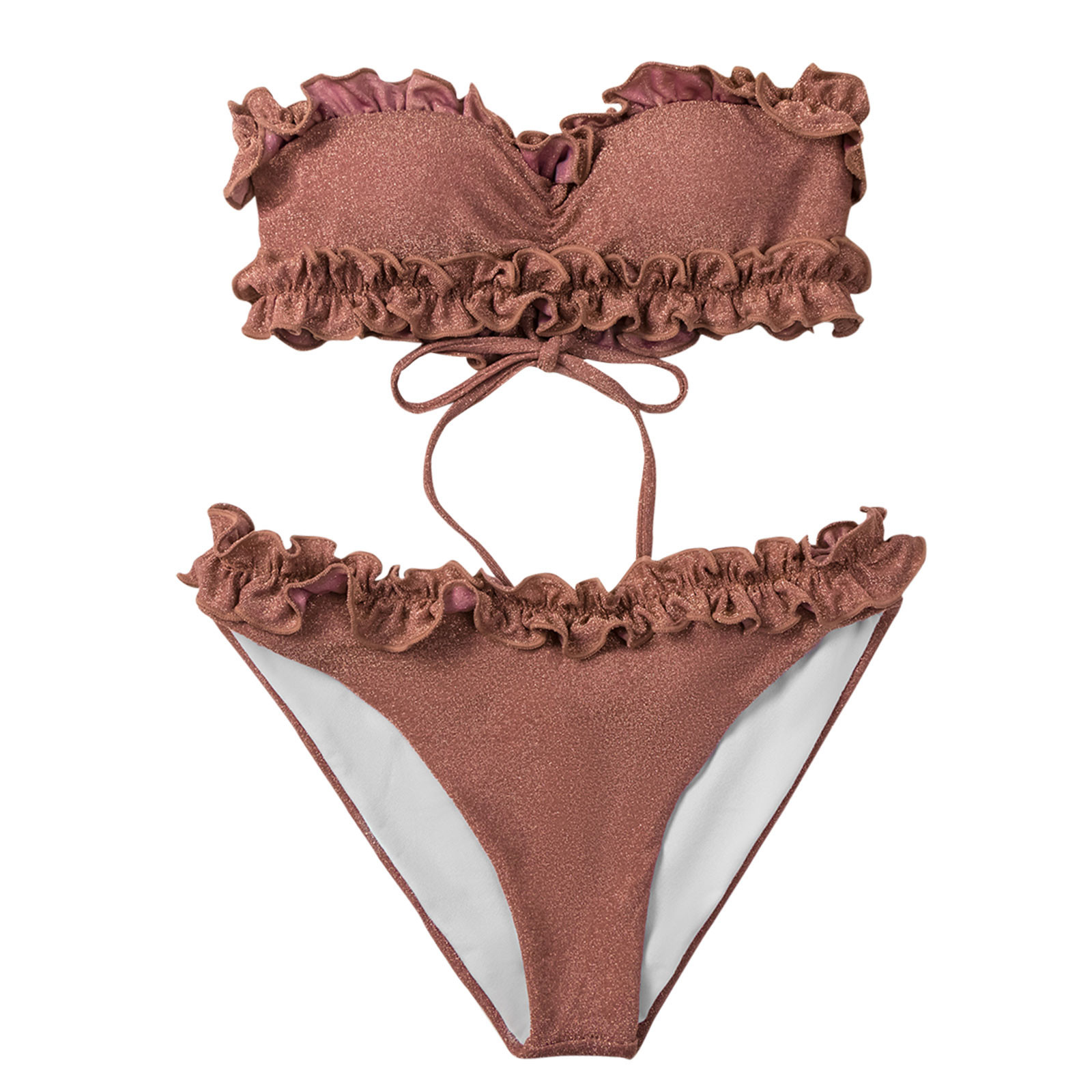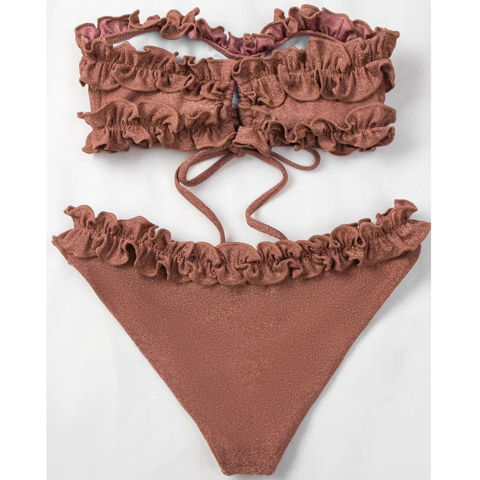 Женский бандажный комплект бикини с блестками, пуш-ап, Бразильская одежда для плавания, пляжная одежда, плиссированная кружевная одежда для плавания