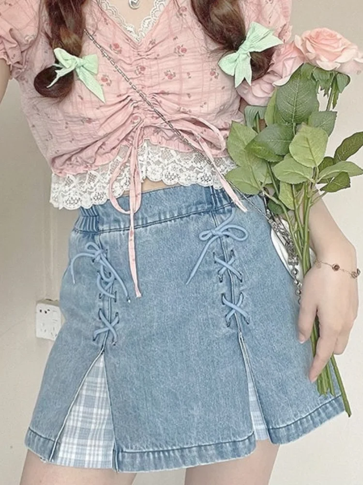 Отзывы о Японская Милая джинсовая мини-юбка для женщин модная юбка в Корейском стиле с