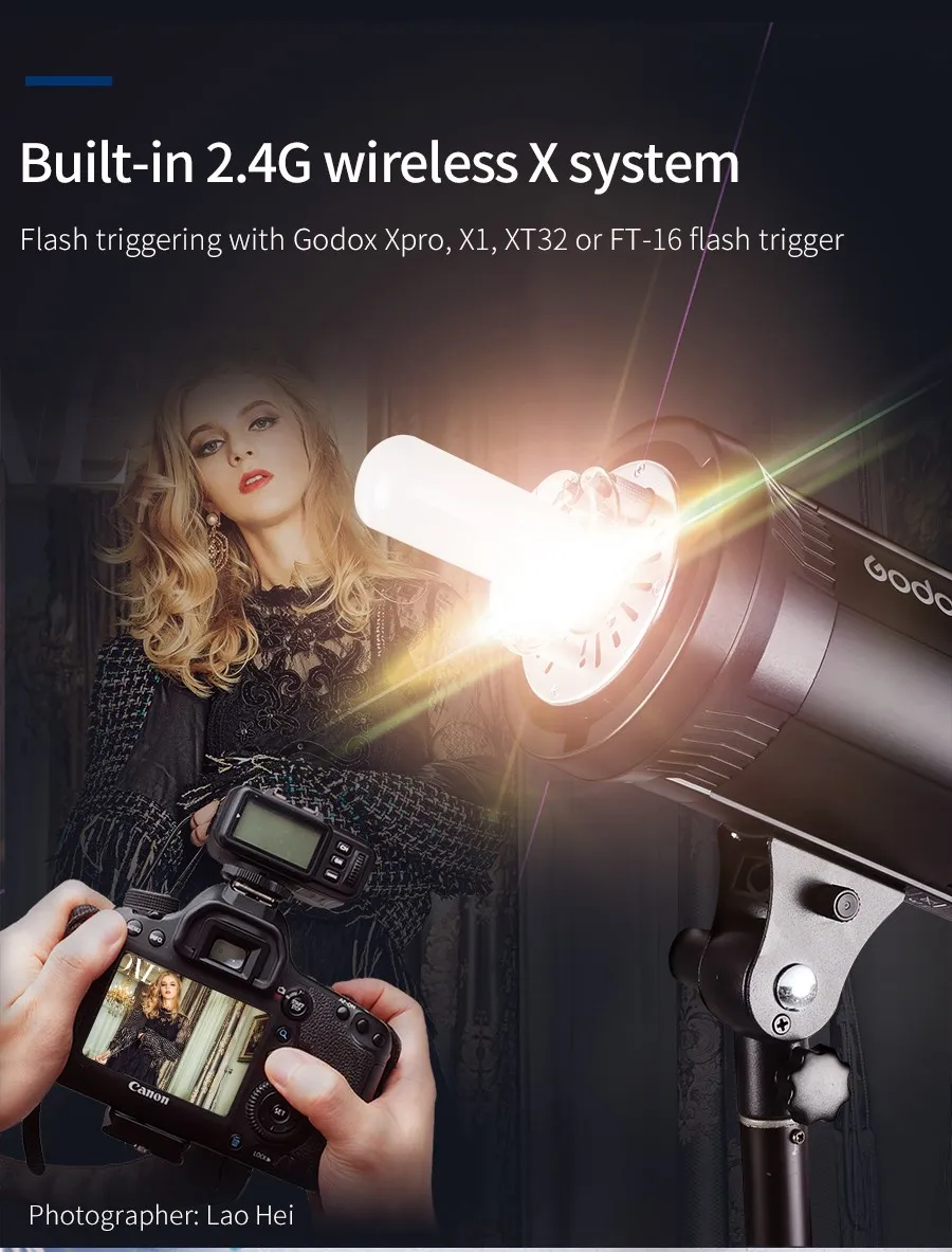 -Беспроводное управление коэффициентом мощности вспышки, включением и выключением модельной лампы и зуммером, а также триггером вспышки Godox Xpro, X1, XT32 или FT-16