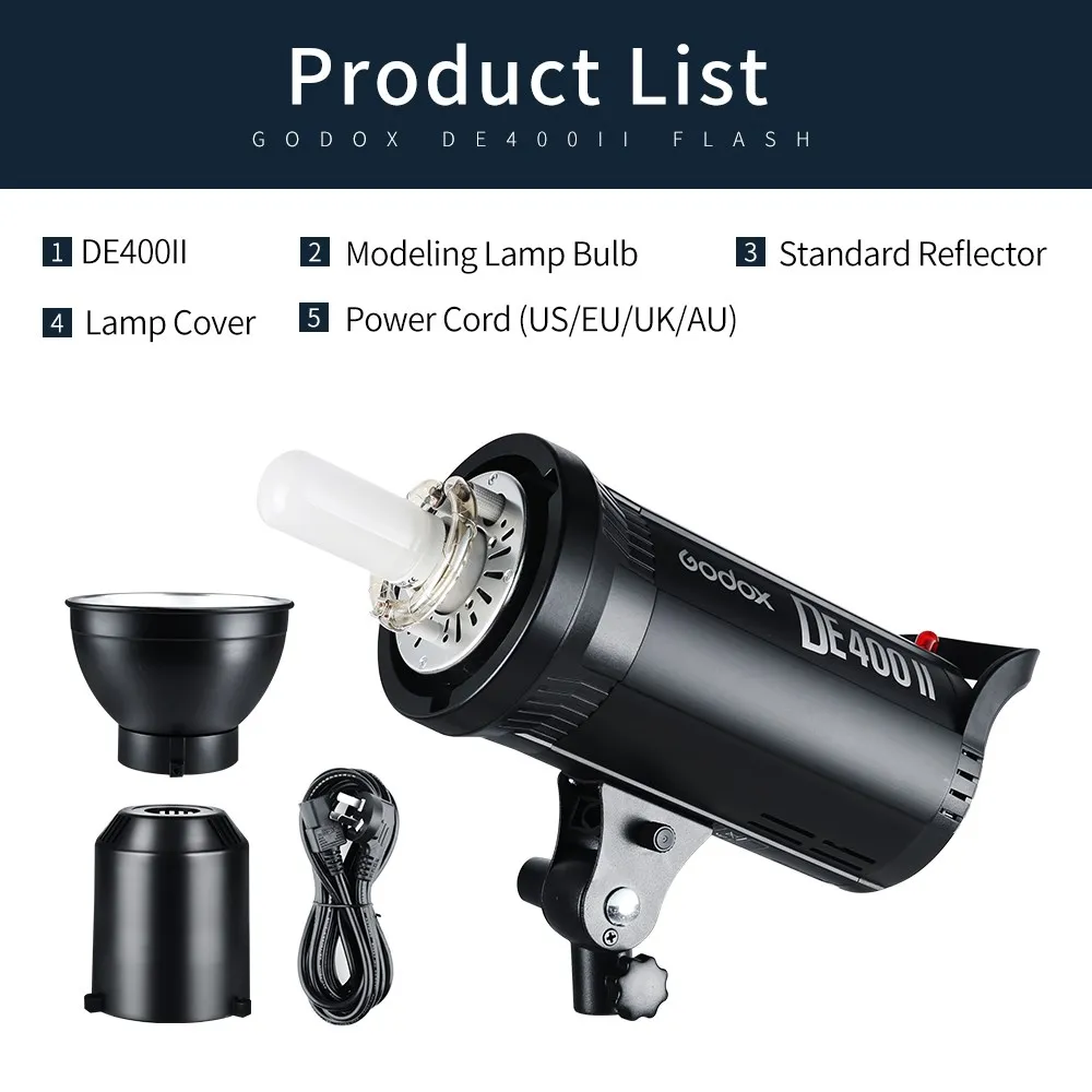 Отзывы о Студийная Вспышка Godox DE400II 400 Вт 400Ws GN65 стробоскоп налобный фонарь для фотосъемки