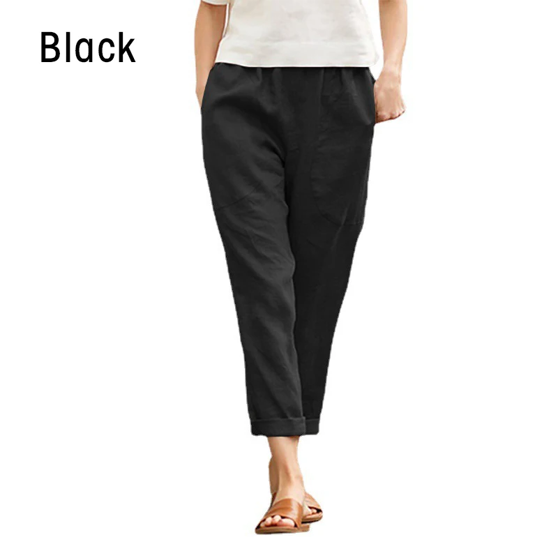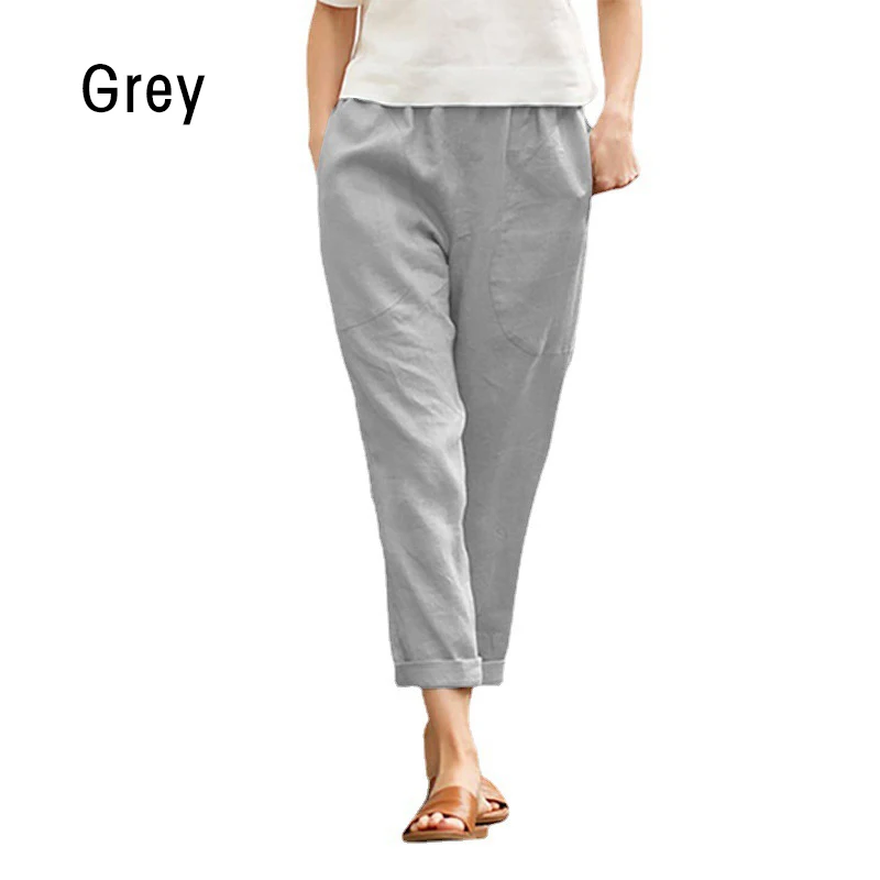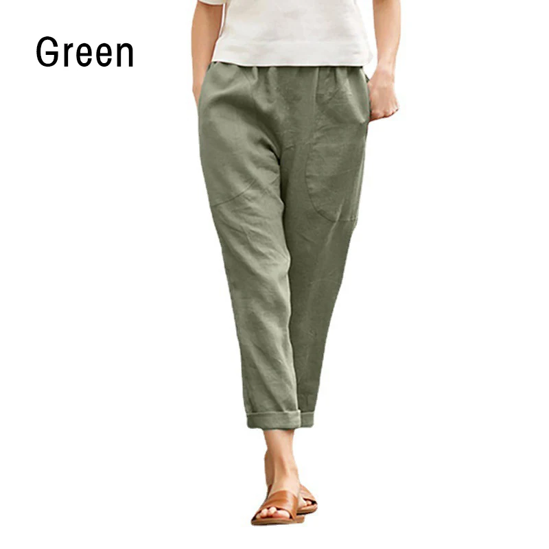 Отзывы о Брюки женские хлопково-льняные однотонные прямые штаны с большими карманами