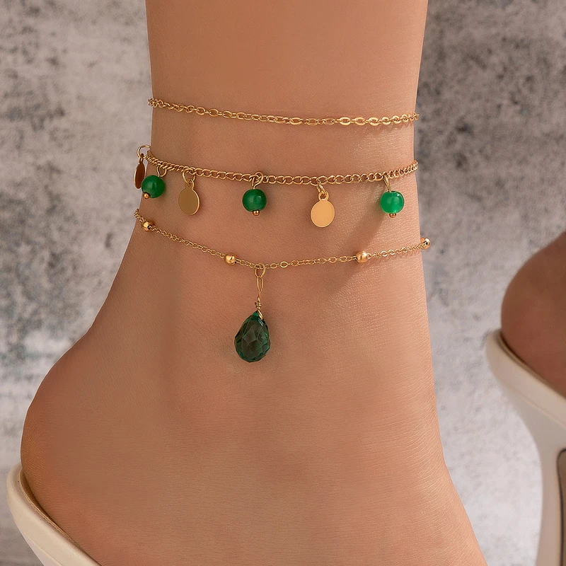Отзывы о Ножные браслеты docona 3 шт./компл. в стиле бохо с Зелеными камнями и кисточками для