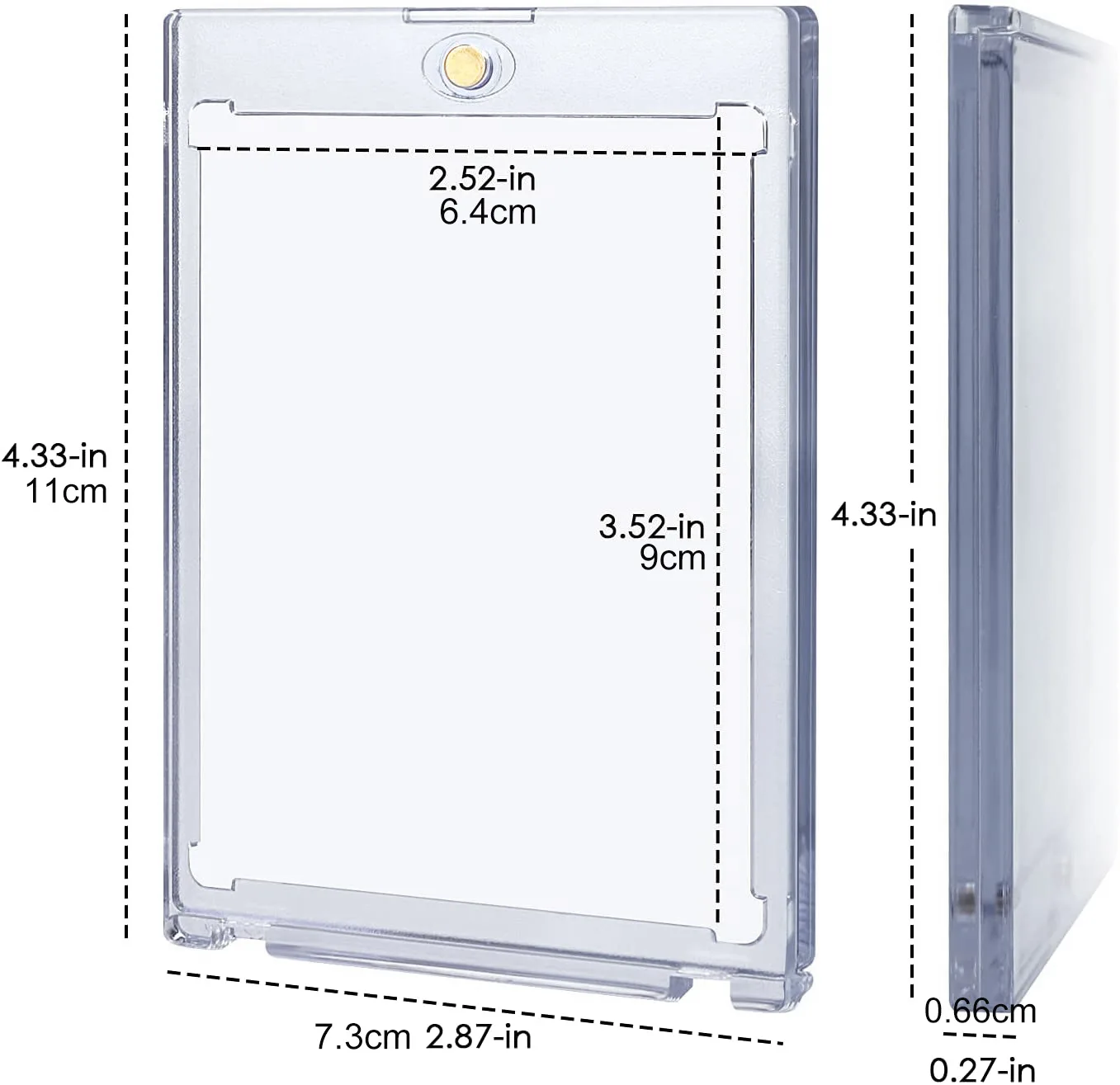 Подходит для карт стандартного размера 3,55 "x 2,55". Заголовок Размер: 0,75 "и 2,5" в ширину. Есть две части: верх и низ, которые не соединяются.