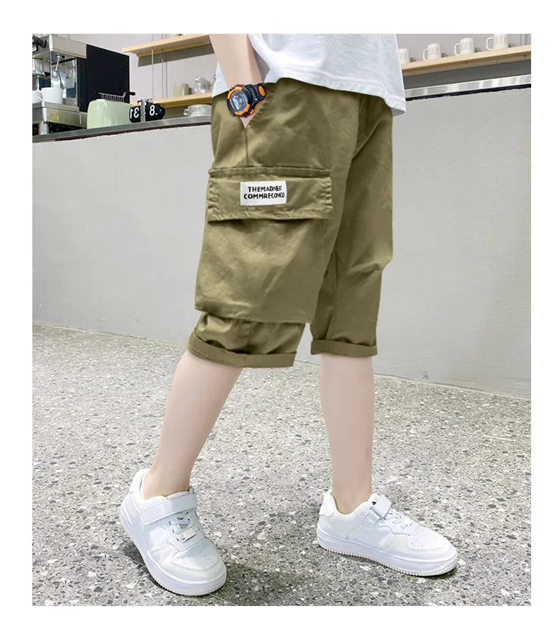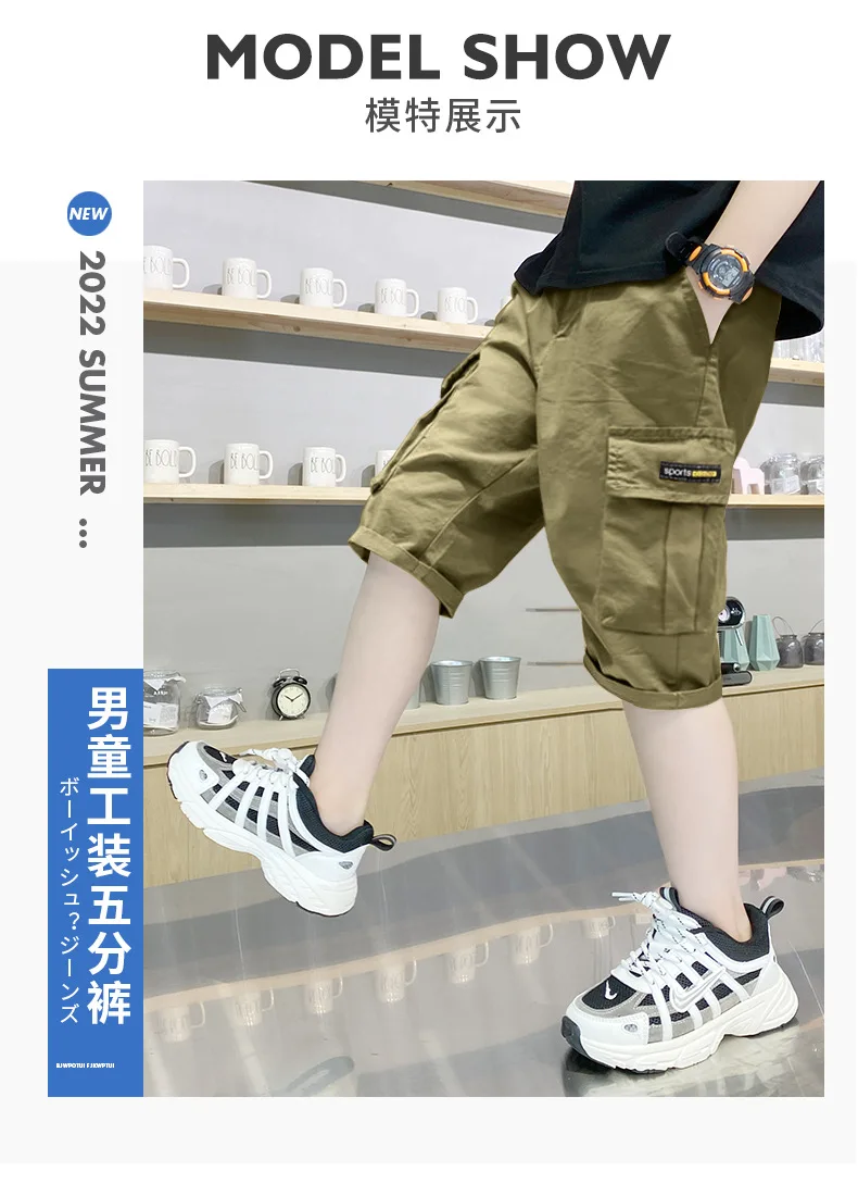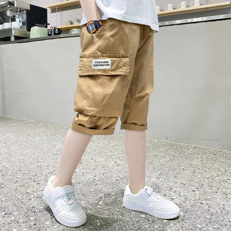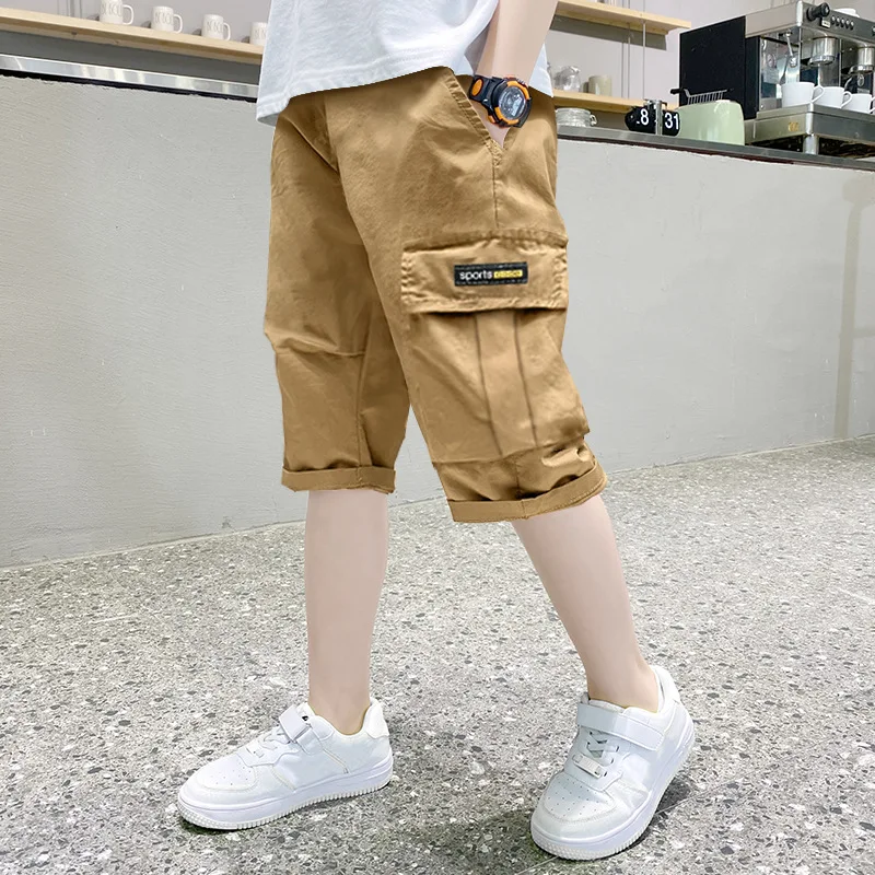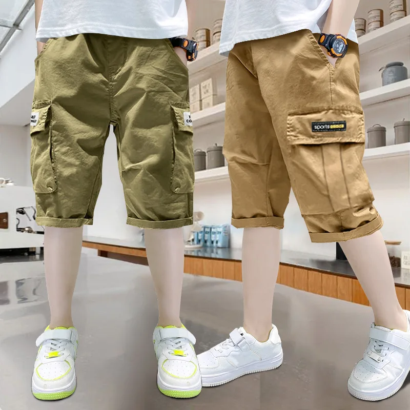 Летние Шорты-карго для мальчиков; Детские модные повседневные короткие брюки; Свободные детские штаны с эластичной резинкой на талии; Шорты для мальчиков; Одежда