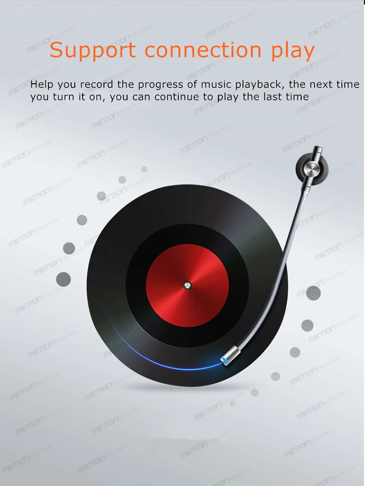Функция обложки альбома, функция памяти точки останова, может запоминать громкость питания или пользовательский громкость;