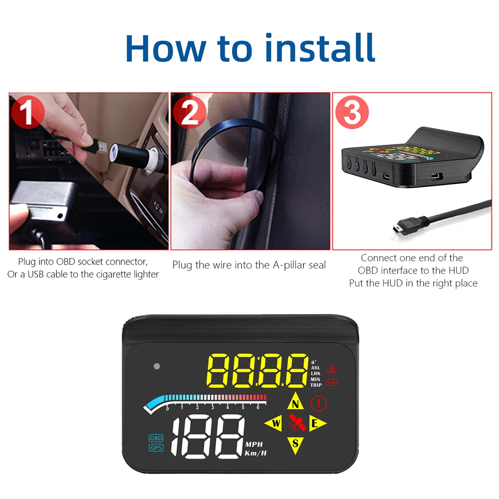 Отзывы о Автомобильный проектор скорости M17 HUD OBD 2 II GPS сигнализация об/мин напряжение для