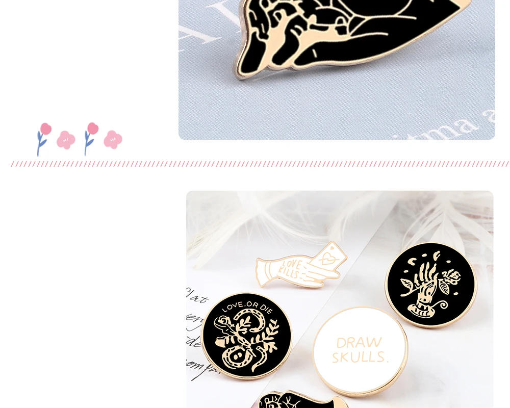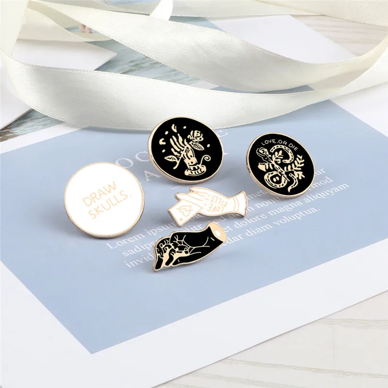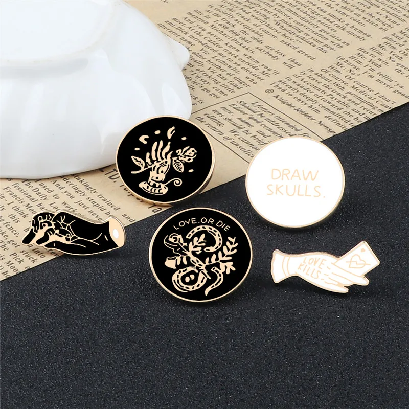 Простая брошь, розовая змея, круглый значок, опасная любовь, булавки, черно-белая эмалированная булавка, креативные джинсовые куртки, рюкзак, ювелирное изделие, подарок